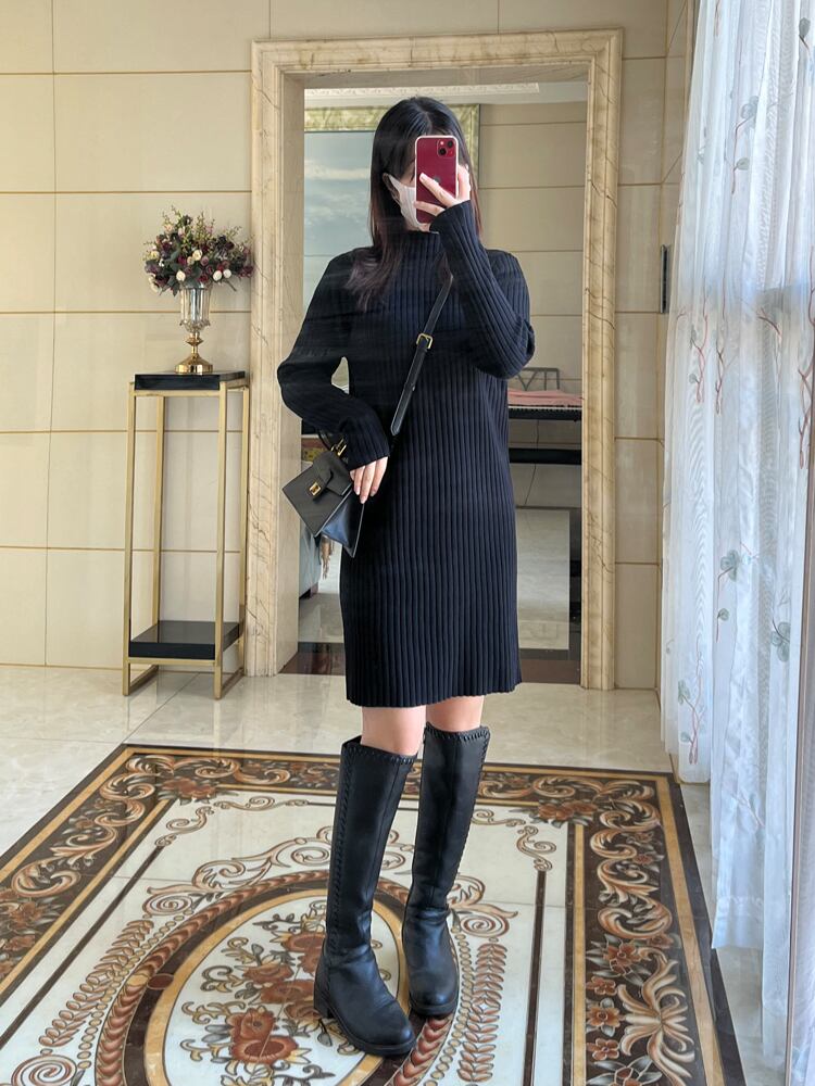 リブワンピース ミニスカート 膝上スカート ミニ丈 ショート 膝上 袖あり 長袖 タートルネック 襟なし スリム タイト 細身 ストレート スマート かわいい 大人 シンプル カジュアル 大人 おしゃれ お洒落 かっこいい 大人可愛い スポーティー クール 無地 春 秋 冬 10代 20代 レディース 女性用 女の子 学生 通学 デート お出かけ 女子会 お泊まり 休日 イベント リゾート 旅行 着回し 普段使い お揃い 韓国 韓国系 ファッション 楽ちん 定番 S M L XL アプリコット ブラック