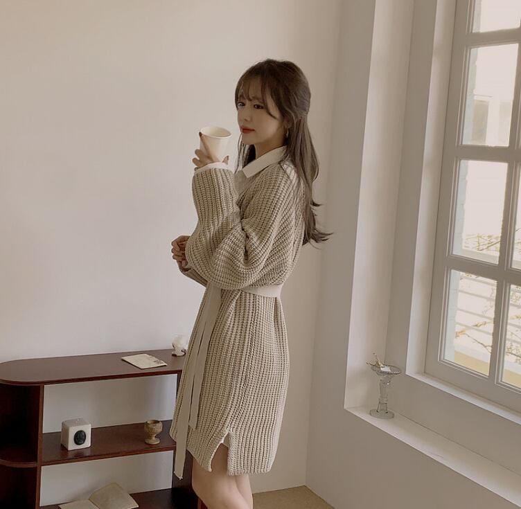 2ピースワンピース ミニスカート ショート 膝上 袖あり 長袖 Vネック 襟あり スリム 細身 ストレート スマート かわいい 大人 シンプル カジュアル 大人 おしゃれ お洒落 かっこいい 大人可愛い 無地 春 秋 冬 10代 20代 30代 レディース 女性用 女の子 学生 通学 デート お出かけ 女子会 お泊まり デート 休日 イベント リゾート 旅行 着回し 普段使い お揃い 韓国 韓国系 ファッション S M L XL ベージュ