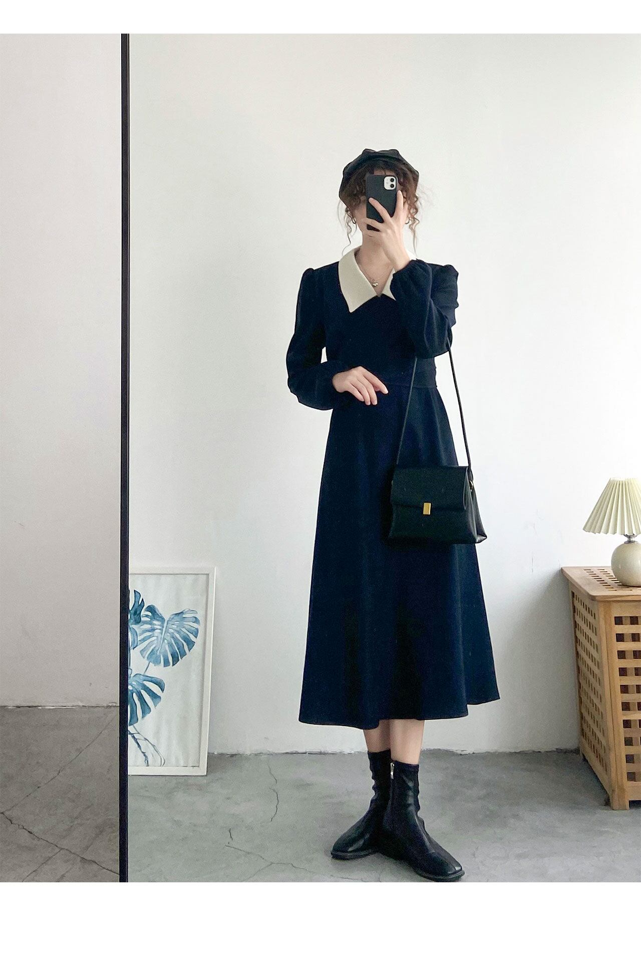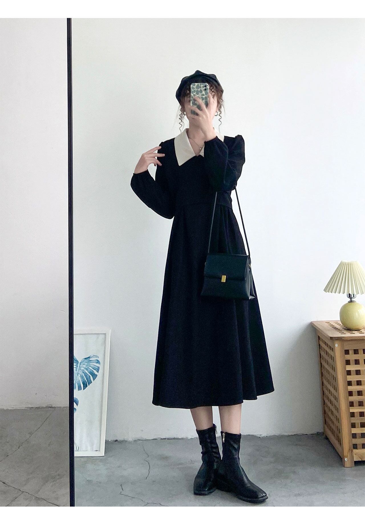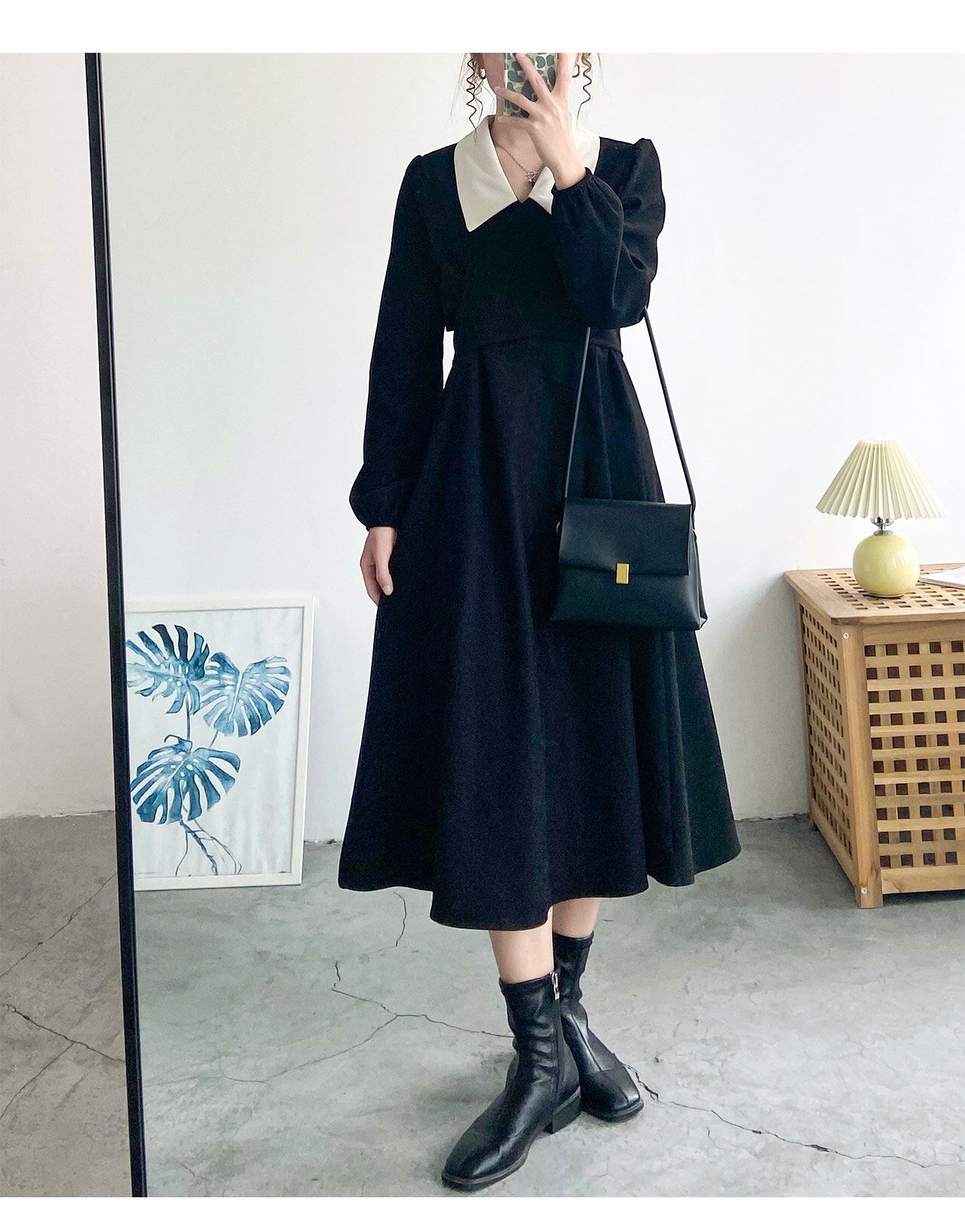 ワンピース フレアワンピース ミモレ ミモレ丈 袖あり 長袖 襟付き かわいい 大人可愛い カジュアル 大人 おしゃれ お洒落 大人女子 無地 秋 冬 入学式 入園式 卒業式 卒園式 謝恩会 二次会 10代 20代 30代 レディース 女性用 デート お出かけ イベント 普段使い ファッション コーデ モテ L