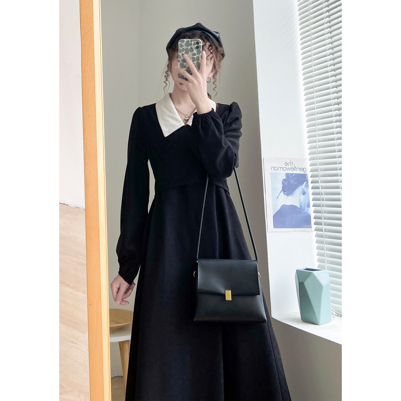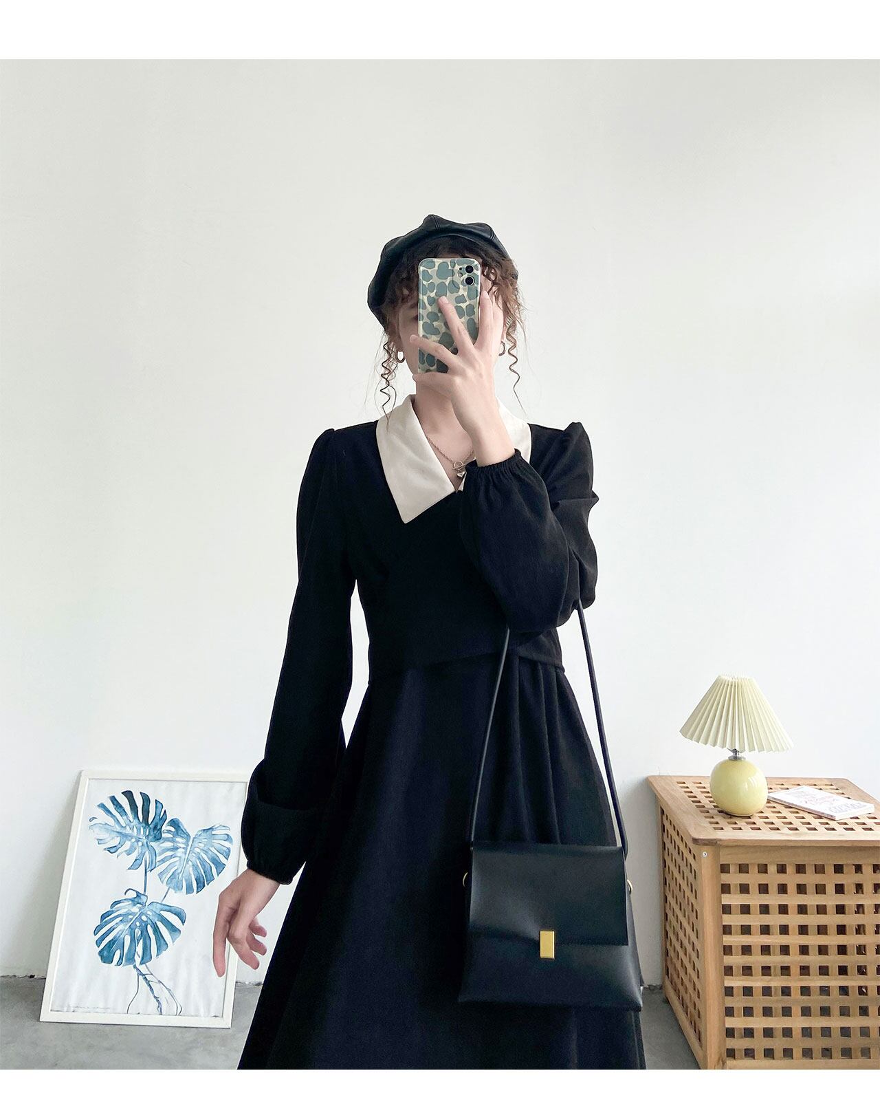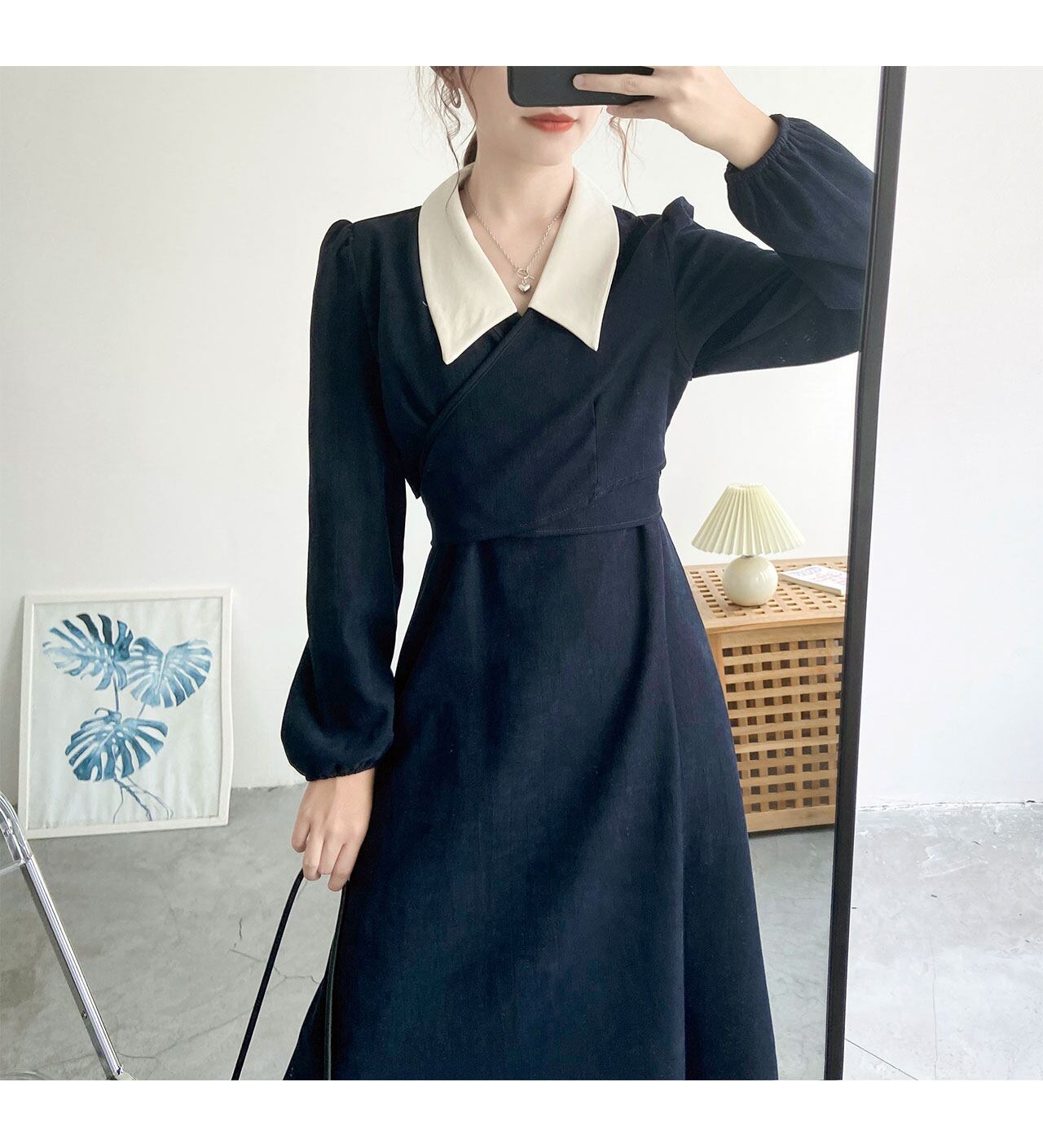 ワンピース フレアワンピース ミモレ ミモレ丈 袖あり 長袖 襟付き かわいい 大人可愛い カジュアル 大人 おしゃれ お洒落 大人女子 無地 秋 冬 入学式 入園式 卒業式 卒園式 謝恩会 二次会 10代 20代 30代 レディース 女性用 デート お出かけ イベント 普段使い ファッション コーデ モテ L