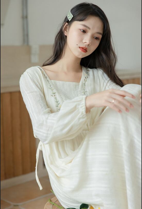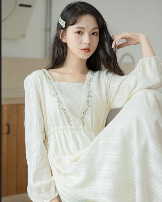 ワンピース ロングスカート 膝下スカート 膝下丈 袖あり 長袖 スクエアネック 細身 ストレート スマート Aライン かわいい 大人可愛い シンプル カジュアル 大人 おしゃれ お洒落 大人 葉っぱ柄 無地 春 夏 秋 冬10代 20代 30代 レディース 女性用 女の子 学生 通学 デート お出かけ 女子会 お泊まり 休日 イベント リゾート 旅行 着回し 普段使い お揃い 韓国 韓国系 ファッション 楽ちん S M L XL ホワイト