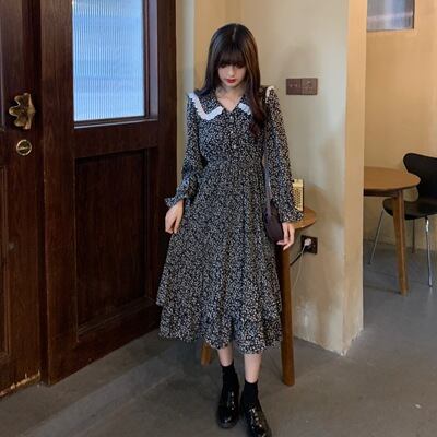ワンピース ロング ロング丈 袖あり 長袖 レース かわいい 大人可愛い きれいめ シンプル カジュアル 大人 おしゃれ お洒落 大人女子 こなれ感 柄 花柄 秋 冬 10代 20代 30代 レディース 女性用 デート お出かけ 女子会 ショッピング 着回し 普段使い ファッション コーデ モテ M L XL 2XL 3XL 4XL 大きい 大きめ ビッグサイズ
