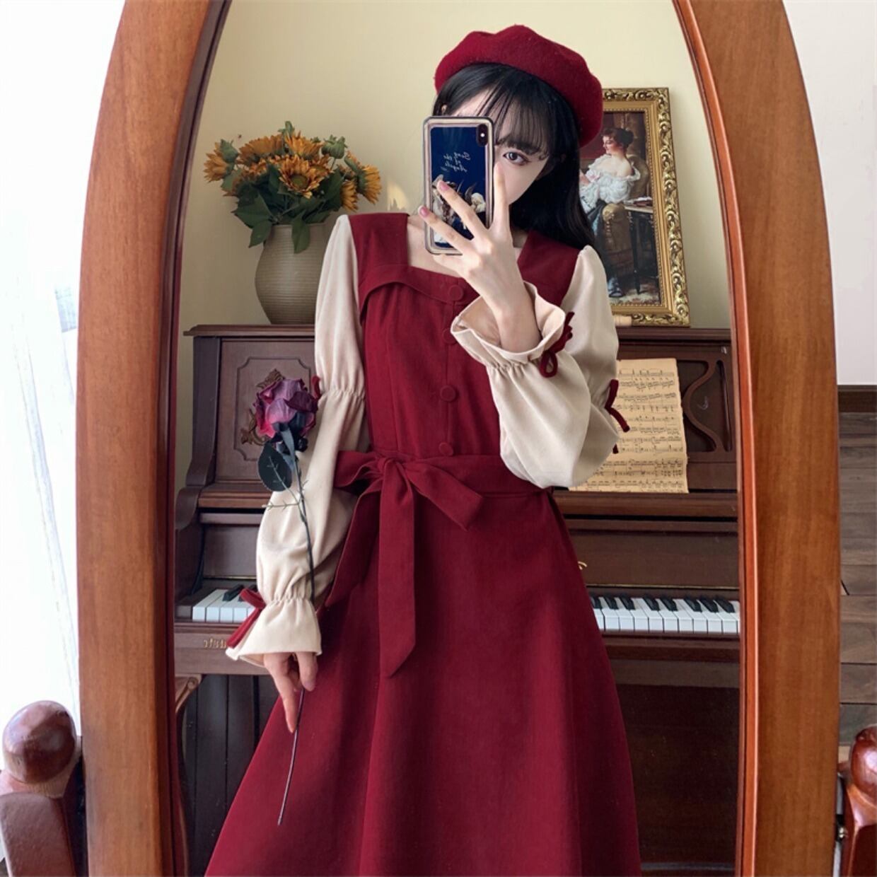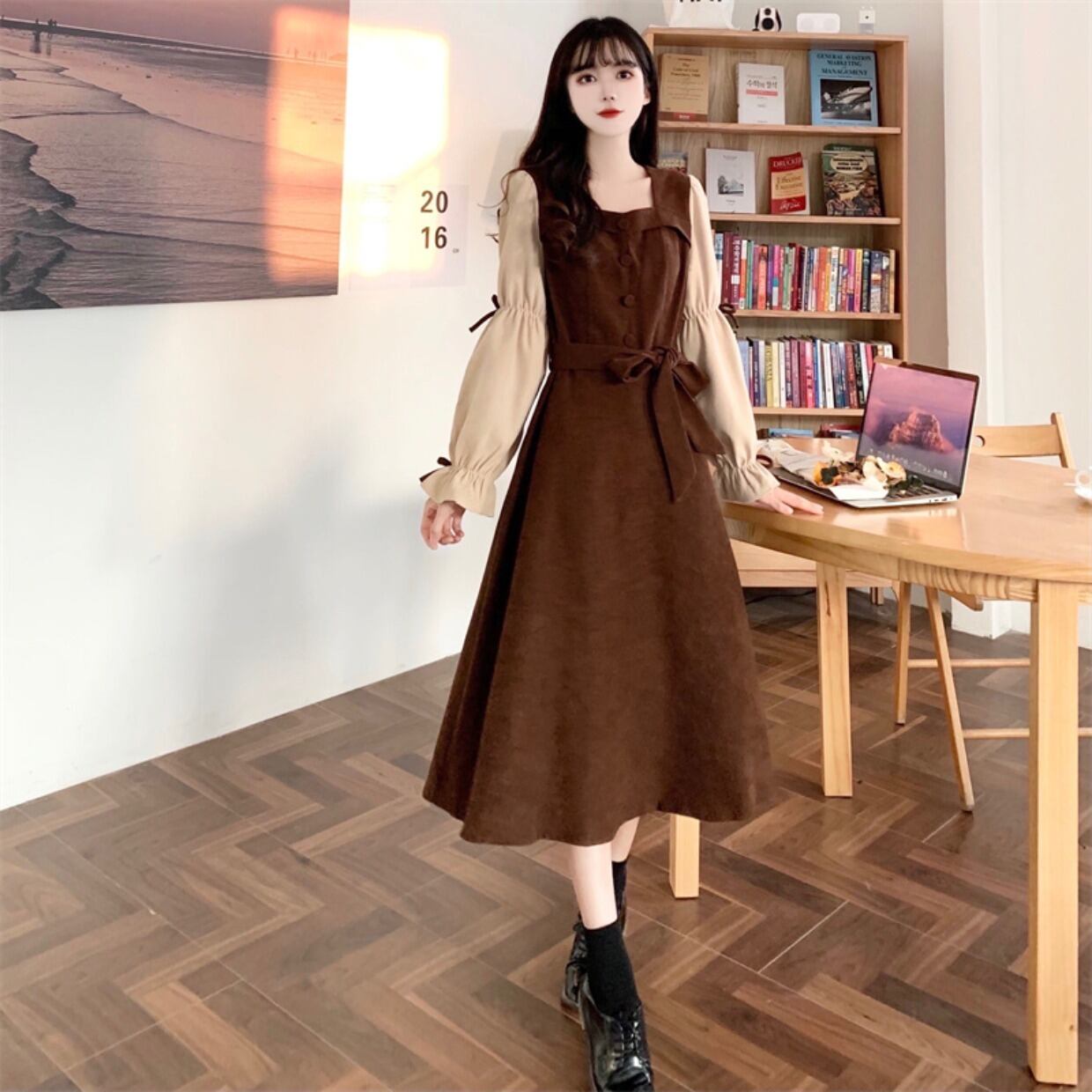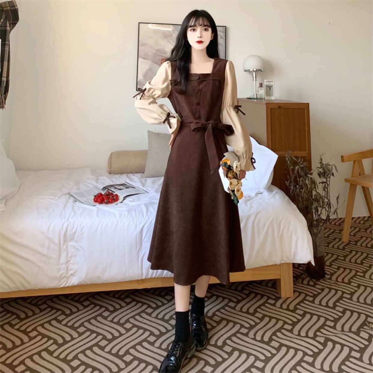 レトロワンピース ワンピース ひざ下ワンピース 膝下丈 袖あり 長袖 萌袖 襟なし Aライン パフスリーブ リボン かわいい 可愛い クラシック フォーマル おしゃれ お洒落 アジアン キュート 個性的 主役級 存在感 無地 春 秋 冬 誕生日 パーティー ガーデン 10代 20代 レディース 女性用 学生 通学 デート お出かけ 女子会 休日 イベント リゾート 旅行 着回し 重ね着 お揃い 双子 韓国 S M L XL 2XL ブラウン バーガンディー
