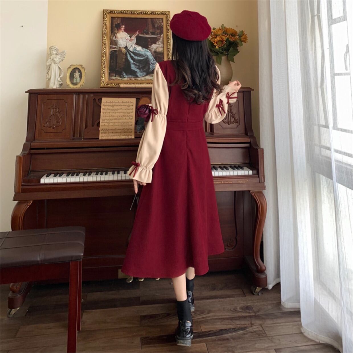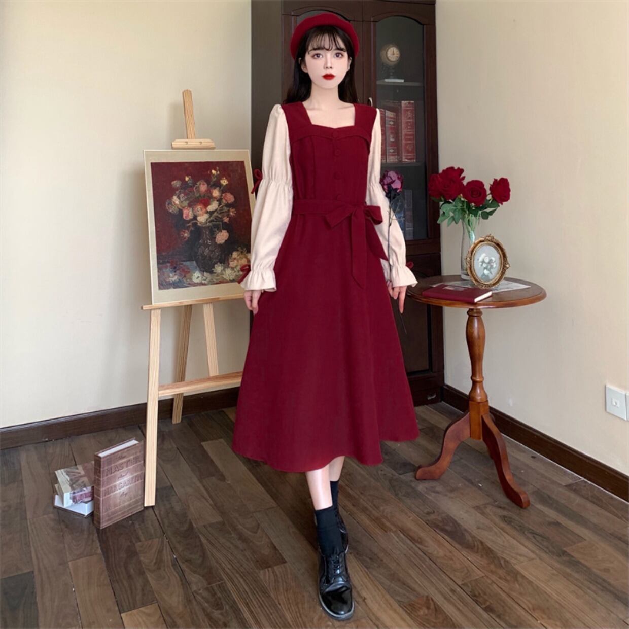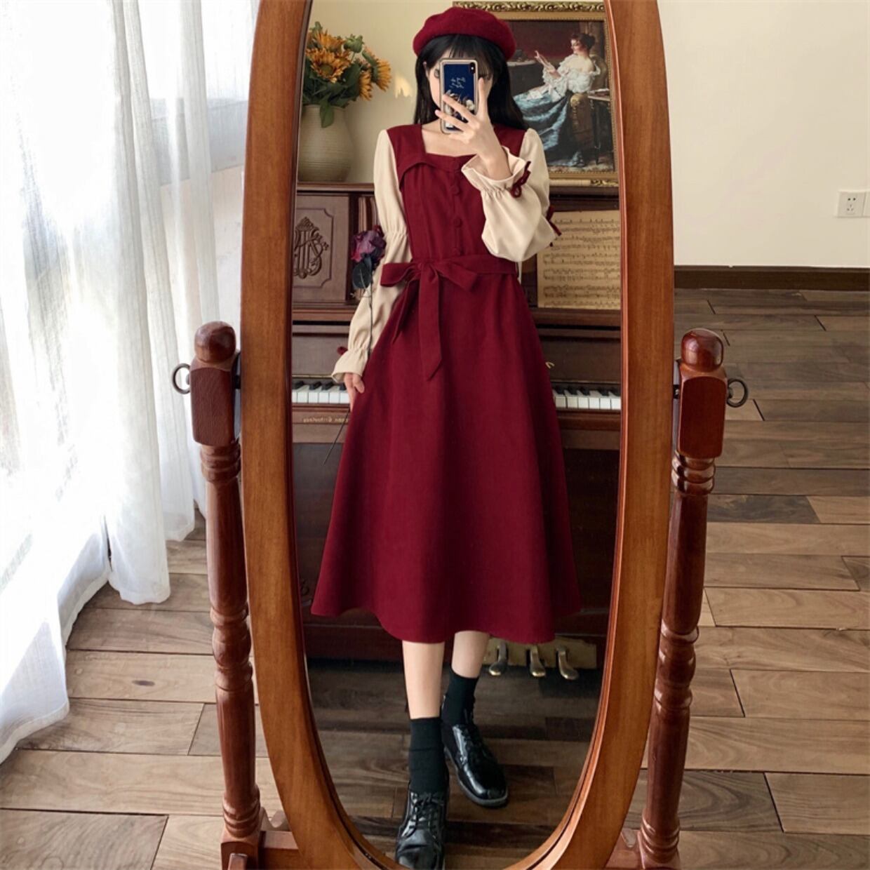 レトロワンピース ワンピース ひざ下ワンピース 膝下丈 袖あり 長袖 萌袖 襟なし Aライン パフスリーブ リボン かわいい 可愛い クラシック フォーマル おしゃれ お洒落 アジアン キュート 個性的 主役級 存在感 無地 春 秋 冬 誕生日 パーティー ガーデン 10代 20代 レディース 女性用 学生 通学 デート お出かけ 女子会 休日 イベント リゾート 旅行 着回し 重ね着 お揃い 双子 韓国 S M L XL 2XL ブラウン バーガンディー