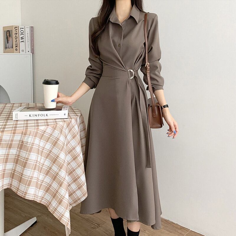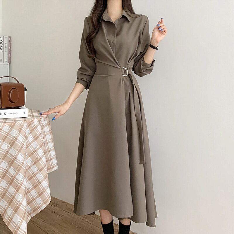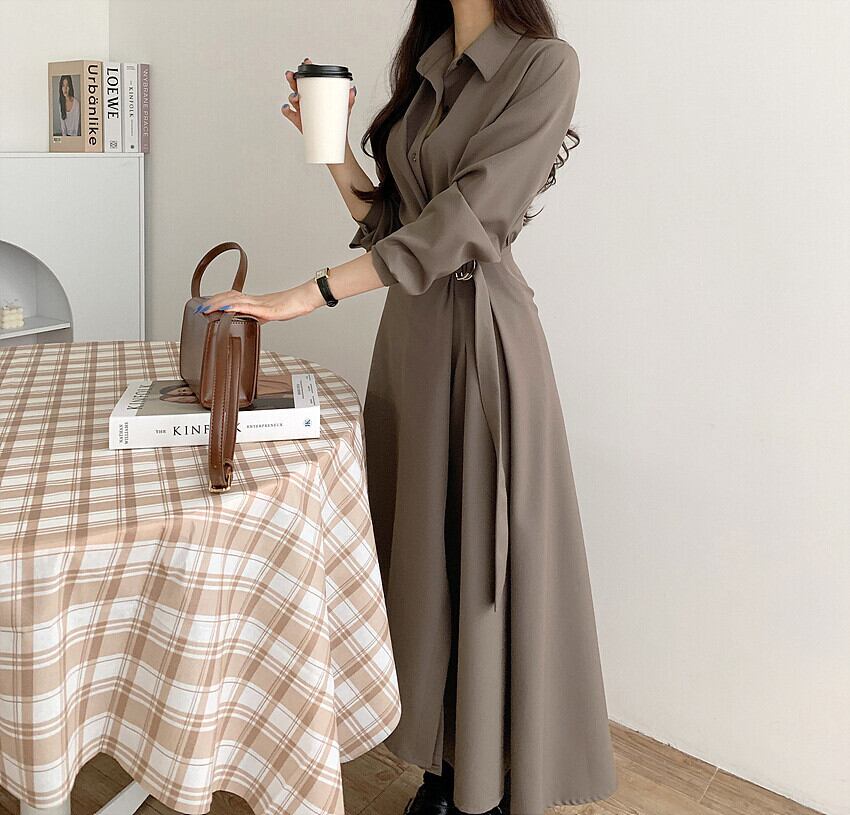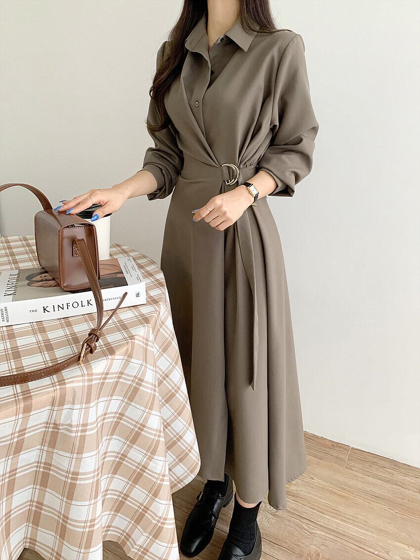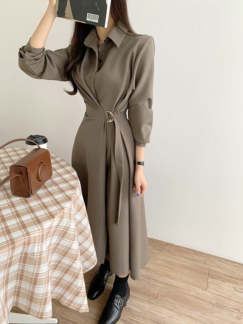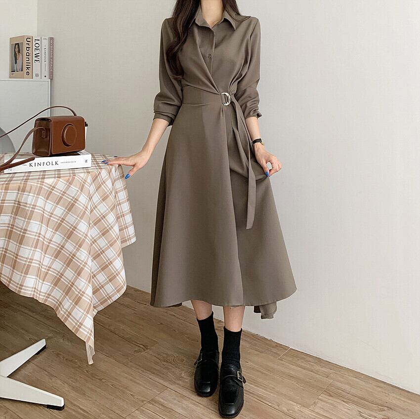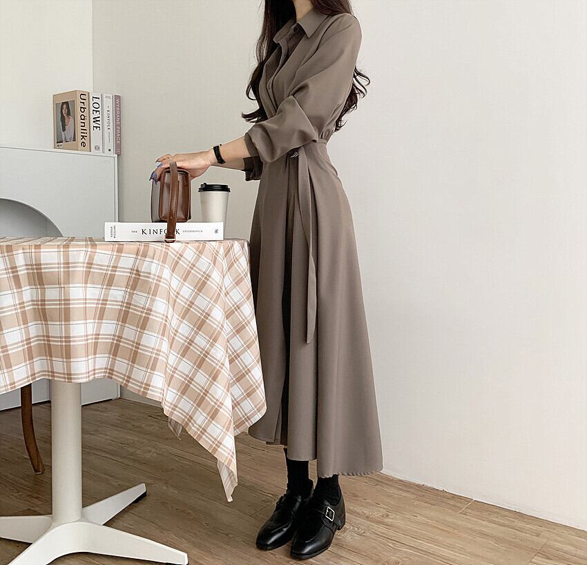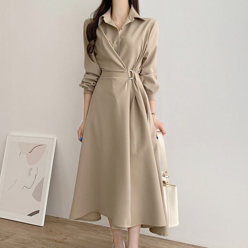 襟付きワンピース 膝下ワンピース ワンピース 膝下丈 袖あり 長袖 萌袖 スリットネック 襟あり Aスライン きれいめ 大人可愛い シンプル フォーマル おしゃれ お洒落 主役級 無地 春 秋 冬通勤 誕生日 パーティー ガーデン 20代 30代 40代 レディース 女性用 デート お出かけ 女子会 休日 イベント リゾート 旅行 着回し 重ね着 お揃い 双子 韓国 フリーサイズ ベージュ カーキ ブラック