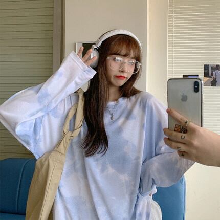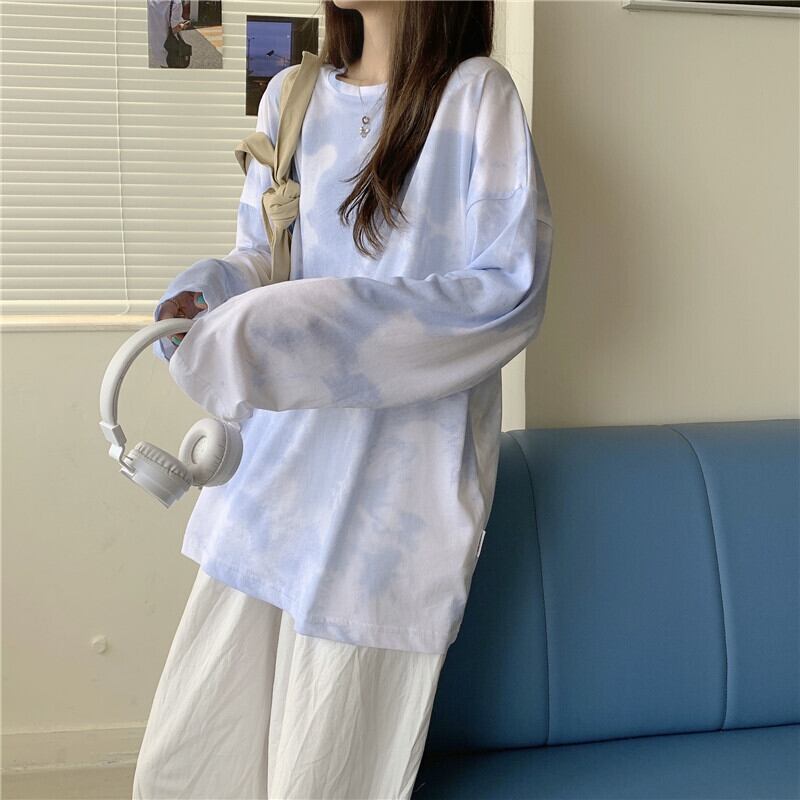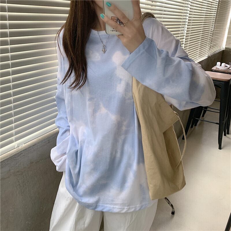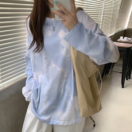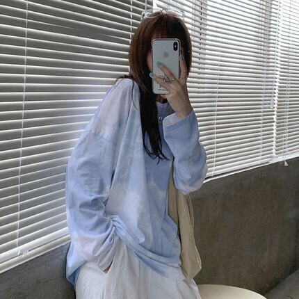 トップス デート シャツ ブラウス カットソー 袖あり 長袖 かわいい 大人可愛い きれいめ シンプル カジュアル 大人 上品 おしゃれ お洒落 主役級 存在感 春 秋 10代 20代 レディース 女性用 OL 学生 通学 デート お出かけ 公園デビュー 女子会 お泊まり 休日 旅行 着回し 普段使い ファッション コーデ 楽ちん トレンド 流行 インスタ映え M L XL 2XL 大きいサイズ 大きい 大きめ ゆったり ゆる 青 ブルー タイダイ