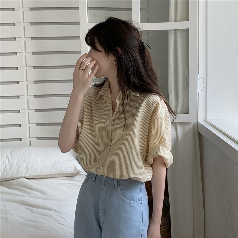 トップス デート シャツ ブラウス カットソー 袖あり 半袖 かわいい 大人可愛い きれいめ シンプル カジュアル 大人 上品 おしゃれ お洒落 主役級 存在感 柄 ストライプ 夏 10代 20代 レディース 女性用 OL 学生 通学 デート お出かけ 公園デビュー 女子会 お泊まり 休日 旅行 着回し 普段使い ファッション コーデ 楽ちん トレンド 流行 インスタ映え フリーサイズ 大きい 大きめ ビッグサイズ ゆったり ゆる 青 ブルー 緑 グリーン イエロー ピンク