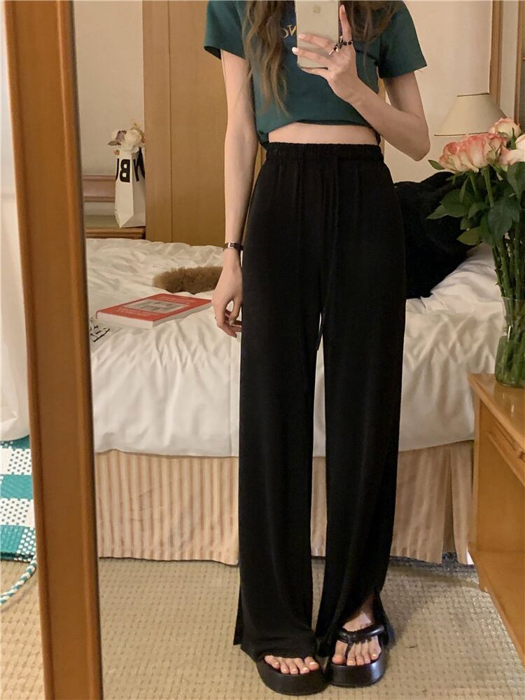 ボトムス パンツ デート ワイドパンツ スリット ハイウエスト かわいい 大人可愛い きれいめ シンプル カジュアル 大人 上品 おしゃれ お洒落 主役級 存在感 無地 春 夏 秋 冬 オールシーズン 10代 20代 レディース 女性用 OL 学生 デート お出かけ 公園デビュー 女子会 お泊まり 休日 旅行 着回し 普段使い ファッション コーデ 楽ちん トレンド 流行 インスタ映え フリーサイズ ゆったり ゆる 黒 ブラック 紫 パープル 灰色 グレー