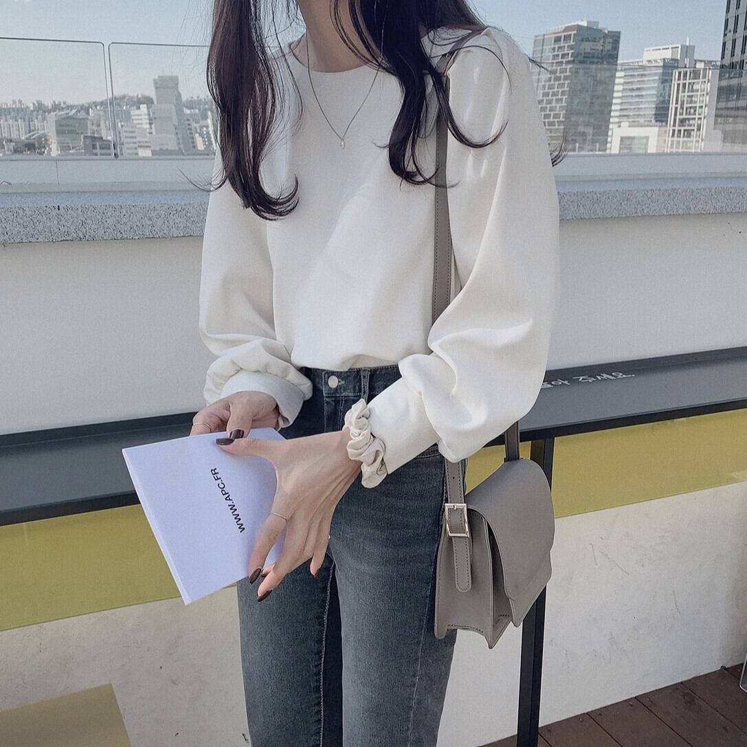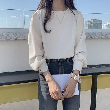 トップス カットソー 白トップス 袖あり 長袖 ボリューム袖 ラウンドネック 襟なし ストレート Iライン 薄手 かわいい 大人可愛い きれいめ 大人 上品 おしゃれ お洒落 大人可愛い 大人女子 こなれ感 ラブリー ガーリー エレガント 存在感 とろみ感 抜け感 無地 謝恩会 10代 20代 30代 40代 50代 レディース 女性用 ママ オフィス OL 通勤 通学 デート お出かけ 女子会 旅行 ホテル レストラン 着回し 普段使い モテ S M L XL 青 ブルー アプリコット