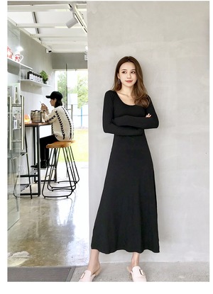 ワンピース ロング ロング丈 袖あり 長袖 Uネック スリム Aライン かわいい 大人可愛い きれいめ シンプル カジュアル 大人 上品 おしゃれ お洒落 無地 春 夏 秋 冬 オールシーズン 10代 20代 30代 レディース 女性用 デート お出かけ 女子会 普段使い ファッション コーデ スタイル 楽ちん モテ XS S M L XL 2XL