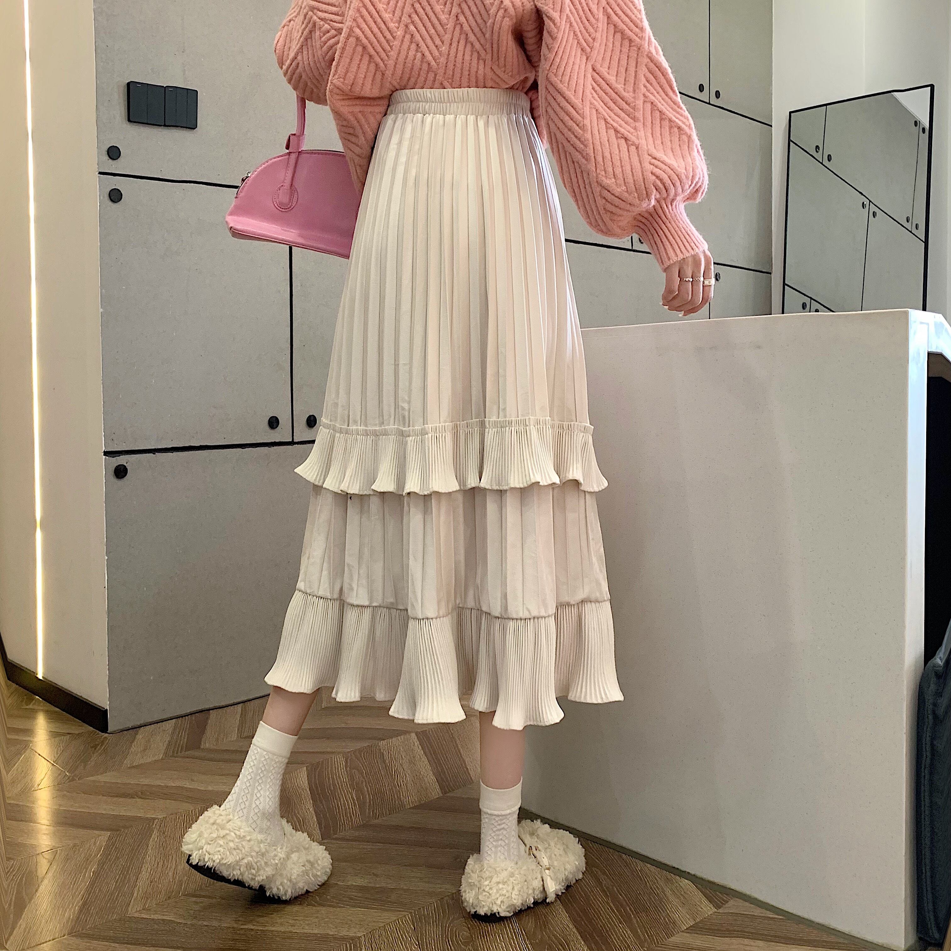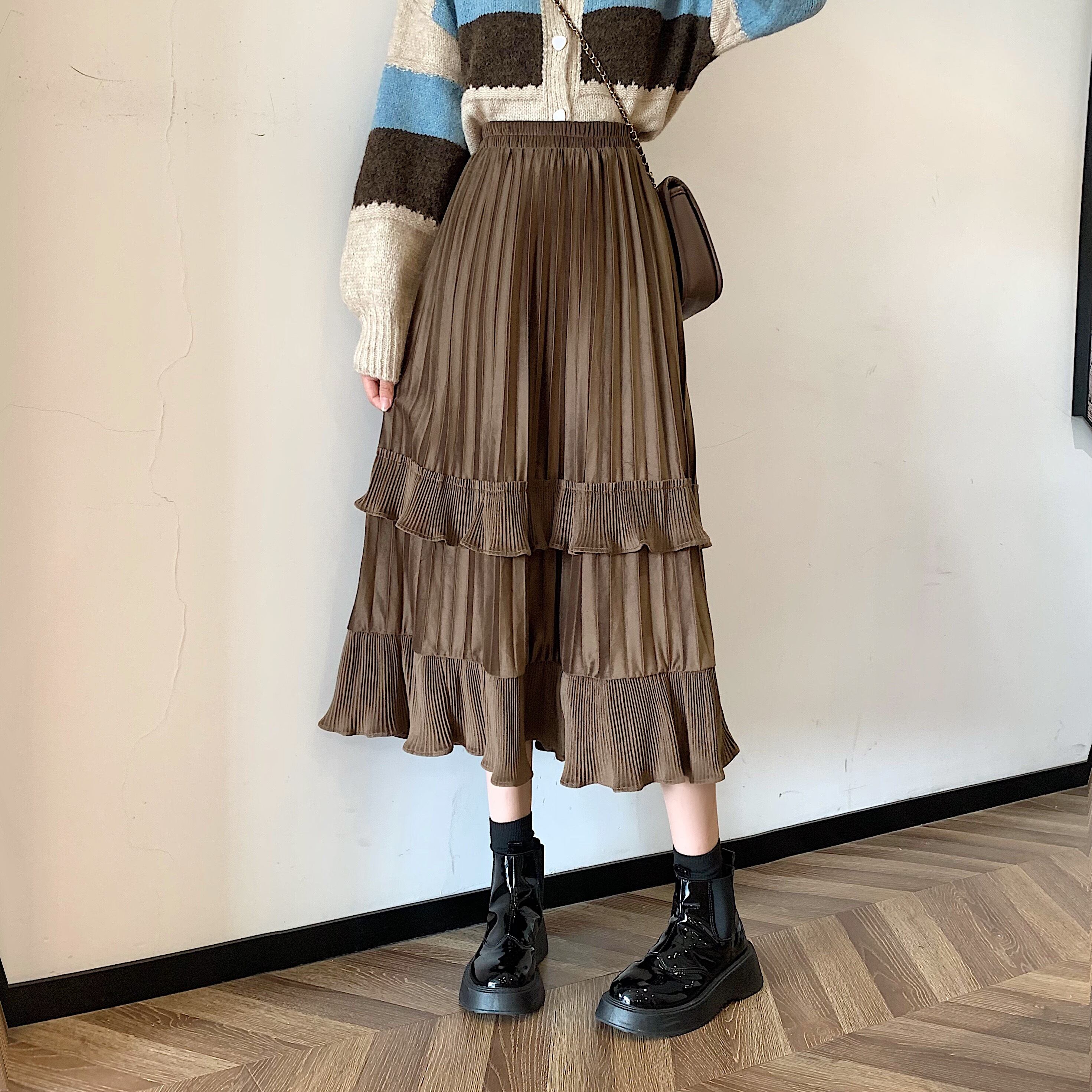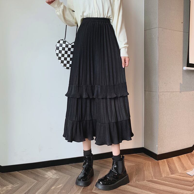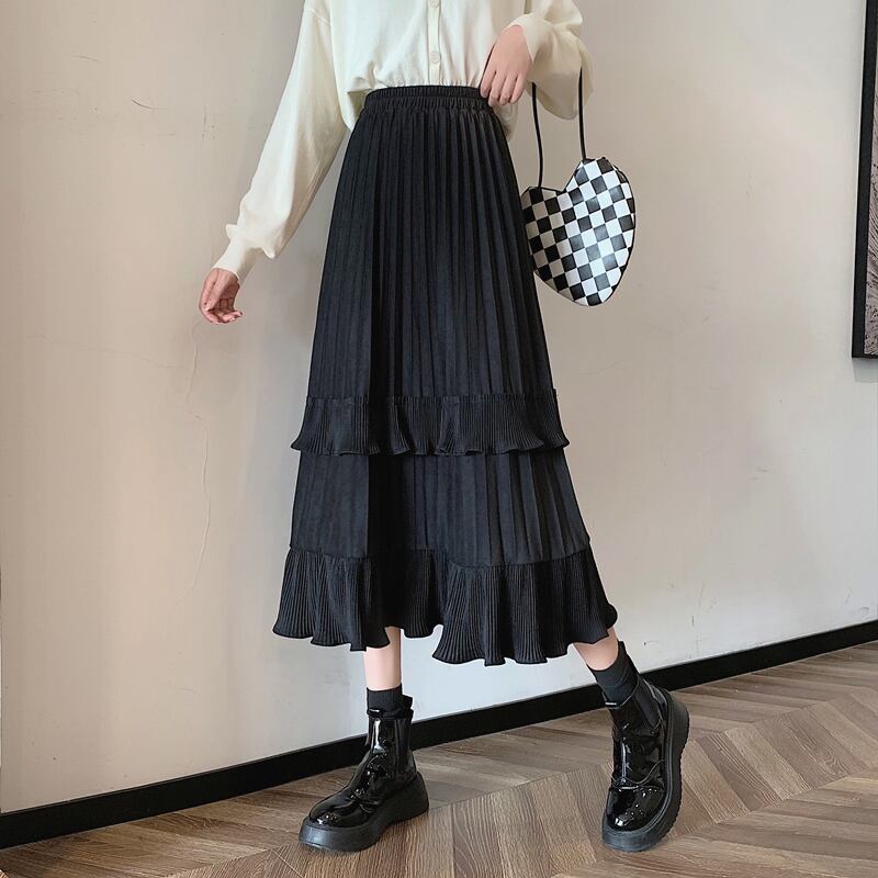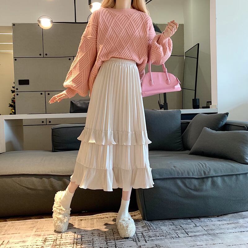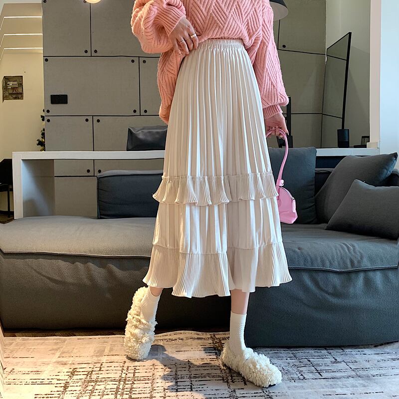プリーツとフリルが特徴的なスカート。