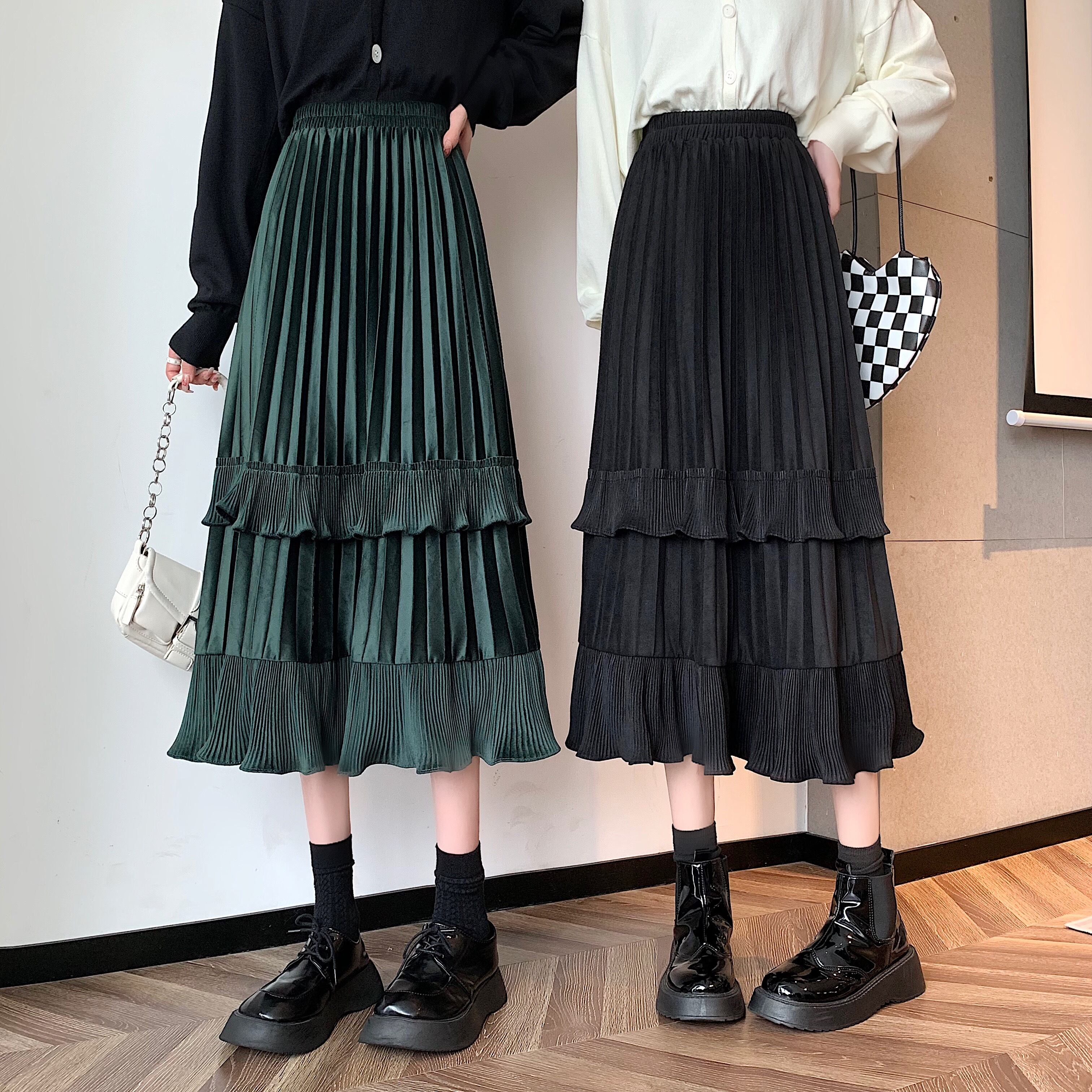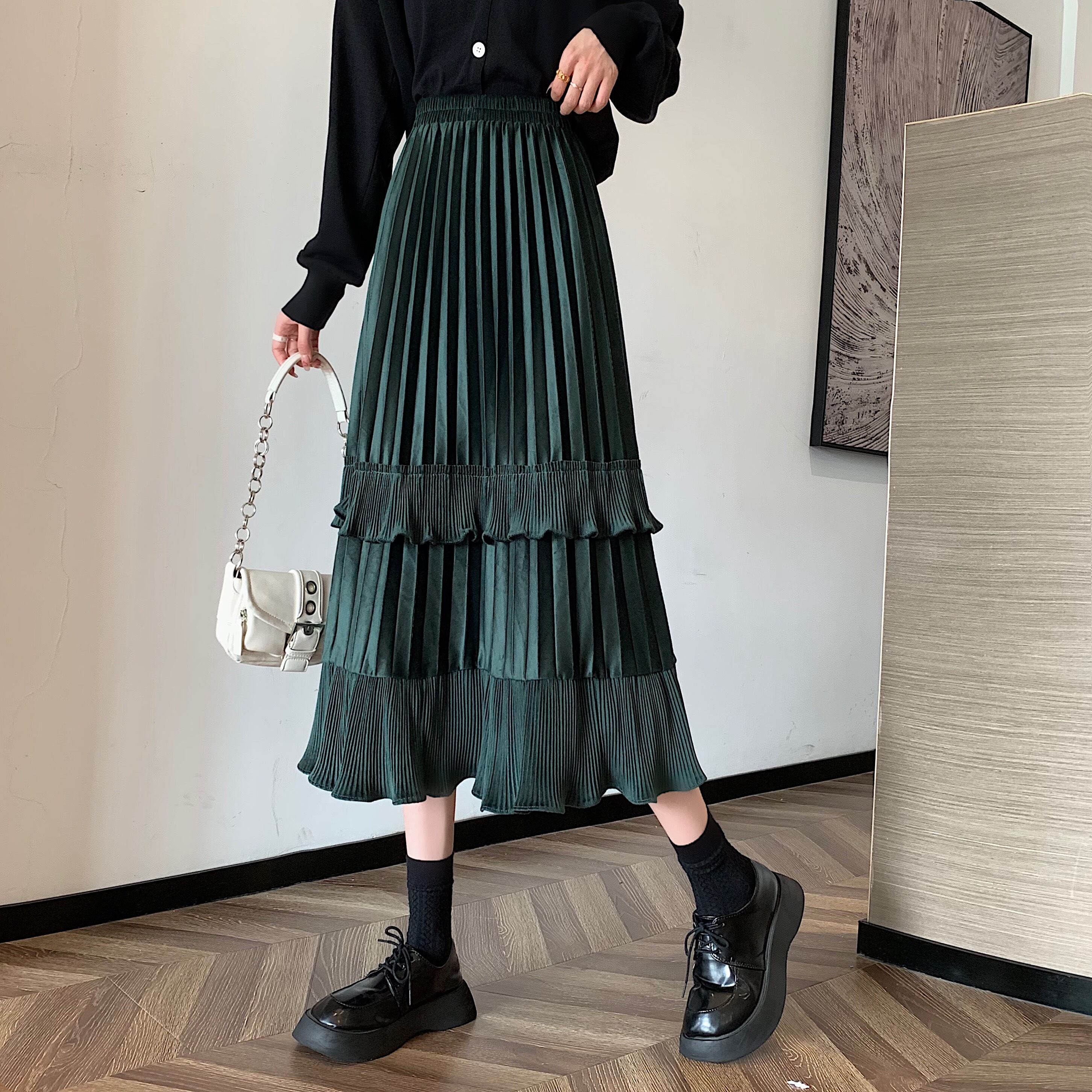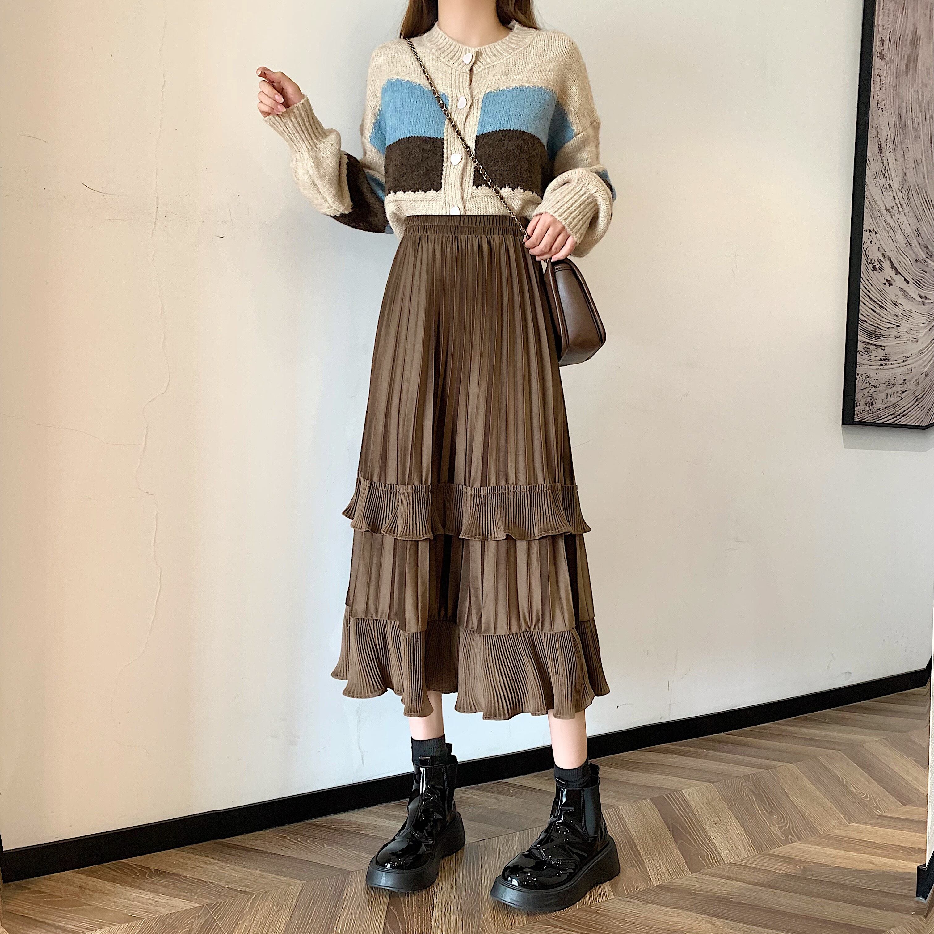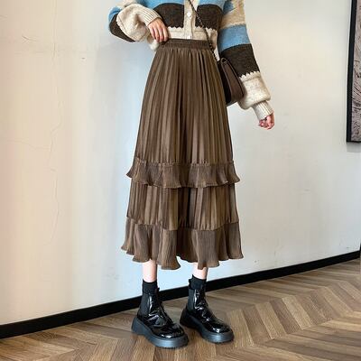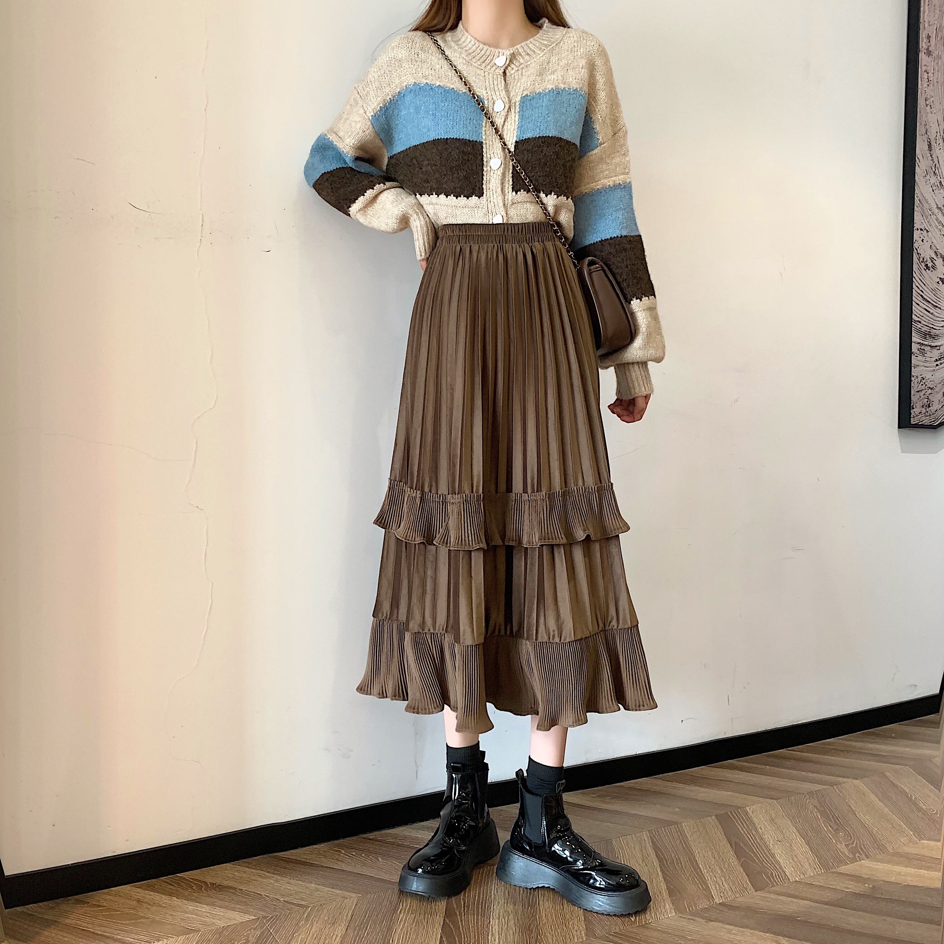 プリーツとフリルが特徴的なスカート。