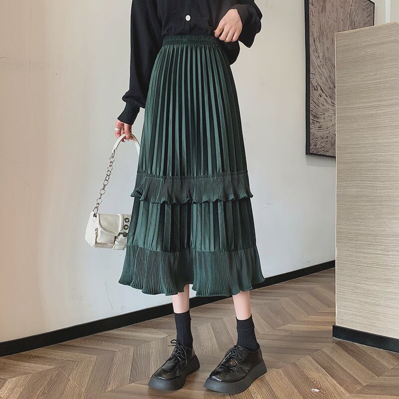スカート デート プリーツスカート 膝丈 ひざ丈 フレア Aライン プリーツ ハイウエスト かわいい 大人可愛い きれいめ シンプル カジュアル 大人 上品 おしゃれ お洒落 主役級 存在感 無地 春 夏 秋 冬 オールシーズン 10代 20代 レディース 女性用 OL 学生 デート お出かけ 公園デビュー 女子会 お泊まり 休日 旅行 着回し 普段使い ファッション コーデ 楽ちん トレンド 流行 インスタ映え フリーサイズ 黒 ブラック 緑 グリーン 茶色 ブラウン アプリコット