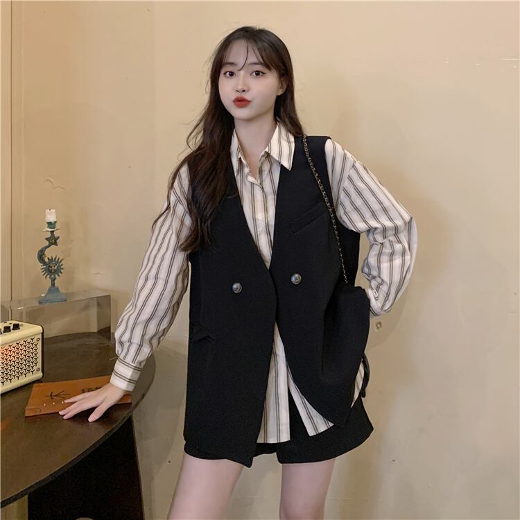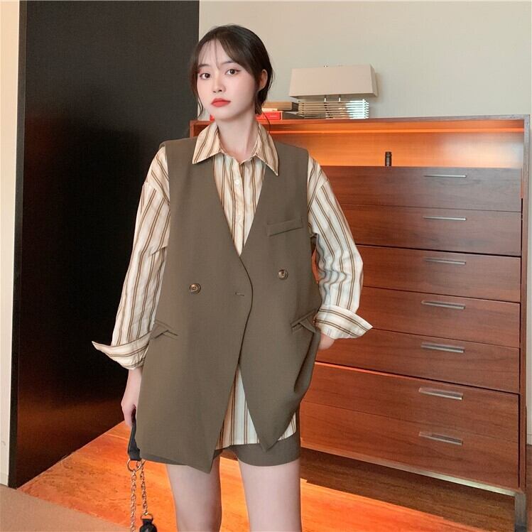 ストライプシャツ ベスト トップス シャツ 袖なし 袖あり 長袖 Vネック 襟付き ストレート Iライン ポケット 前開き 2way 薄手 2点セット かわいい 大人可愛い カジュアル 大人 おしゃれ お洒落 かっこいい 大人可愛い 大人女子 こなれ感 ラフ キュート クール 存在感 とろみ感 抜け感 無地 ストライプ 10代 20代 30代 40代 レディース 女性用 ママ 学生 通学 デート お出かけ 女子会 休日 イベント 旅行 着回し 普段使い 重ね着 楽ちん モテ フリーサイズ ゆったり ゆる