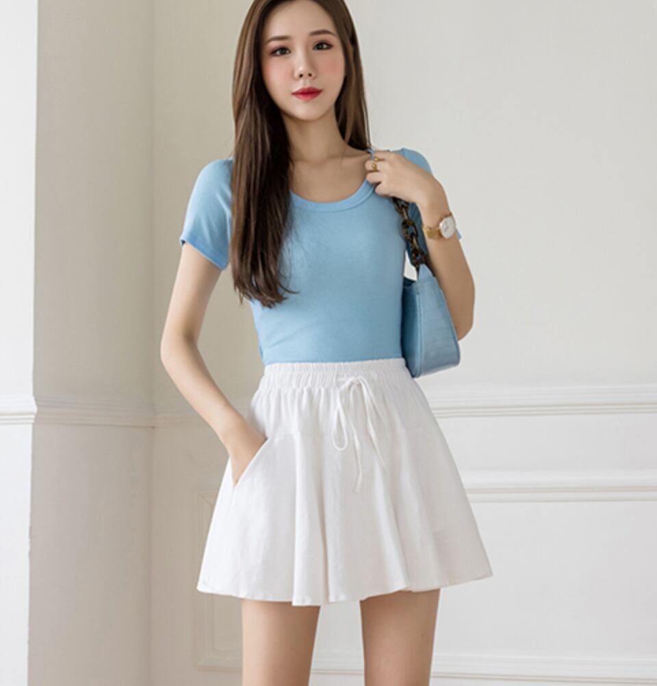 カジュアルな雰囲気で着用できるショート丈スカート。