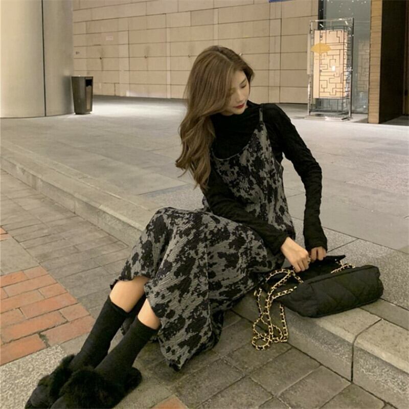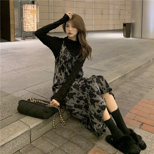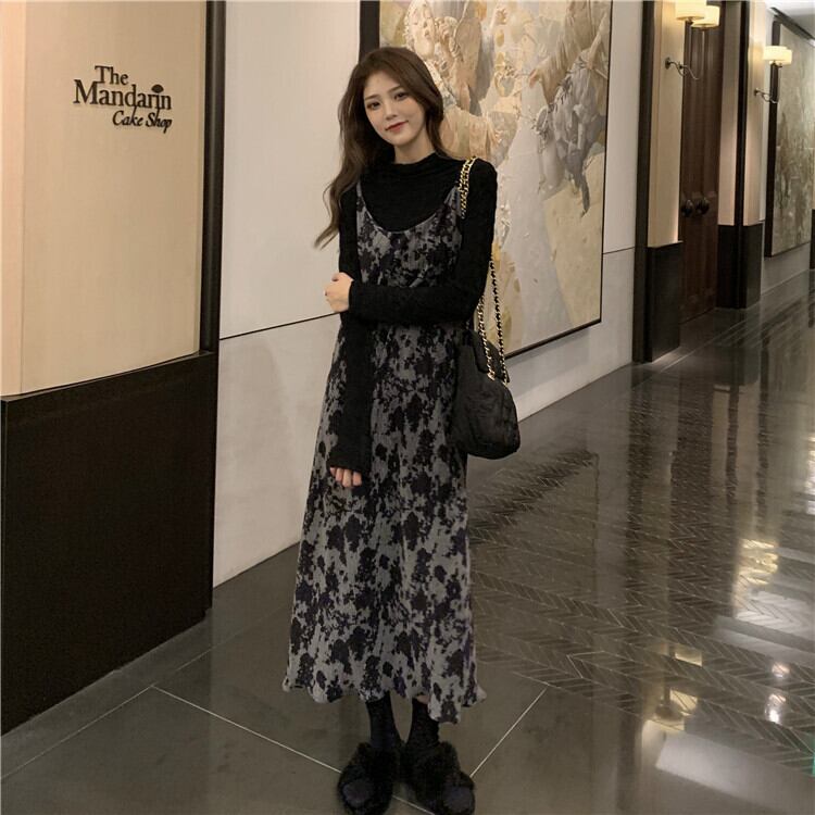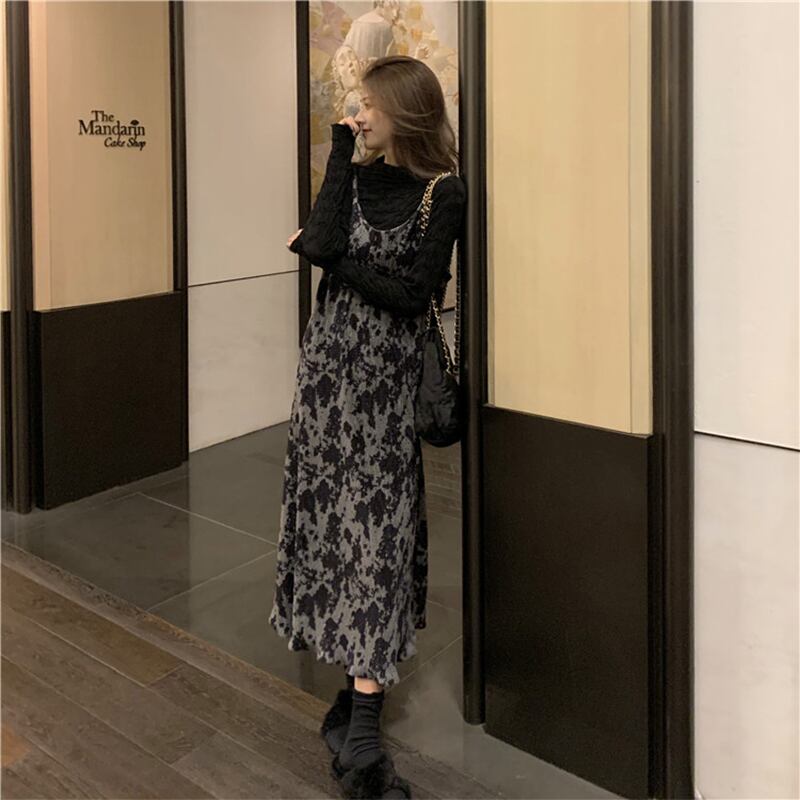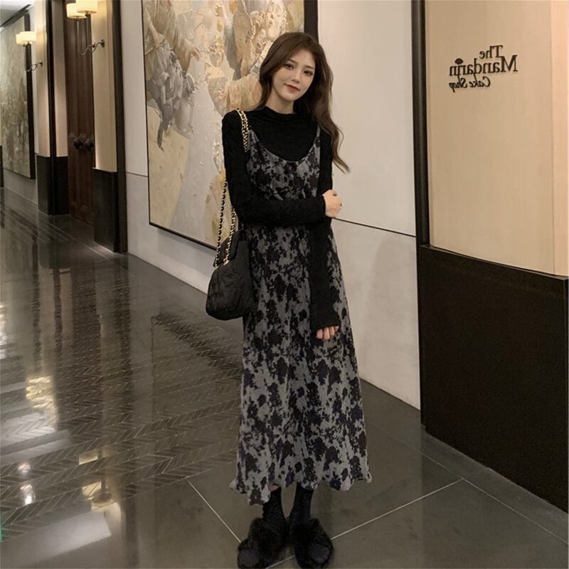 キャミソールワンピース レトロワンピース ひざ下ワンピース 膝下丈 袖あり 長袖 萌袖 ハーフタートルネック 襟なし ストレートライン かわいい 可愛い シンプル 大人可愛い おしゃれ お洒落 アジアン キュート 個性的 主役級 存在感 無地 春 秋 冬 誕生日 パーティー 10代 20代 30代 レディース 女性用 学生 通学 デート お出かけ 女子会 休日 イベント リゾート 旅行 着回し 重ね着 お揃い 双子 韓国 M L XL 2XL 3XL 4XL 大きいサイズ ブラック