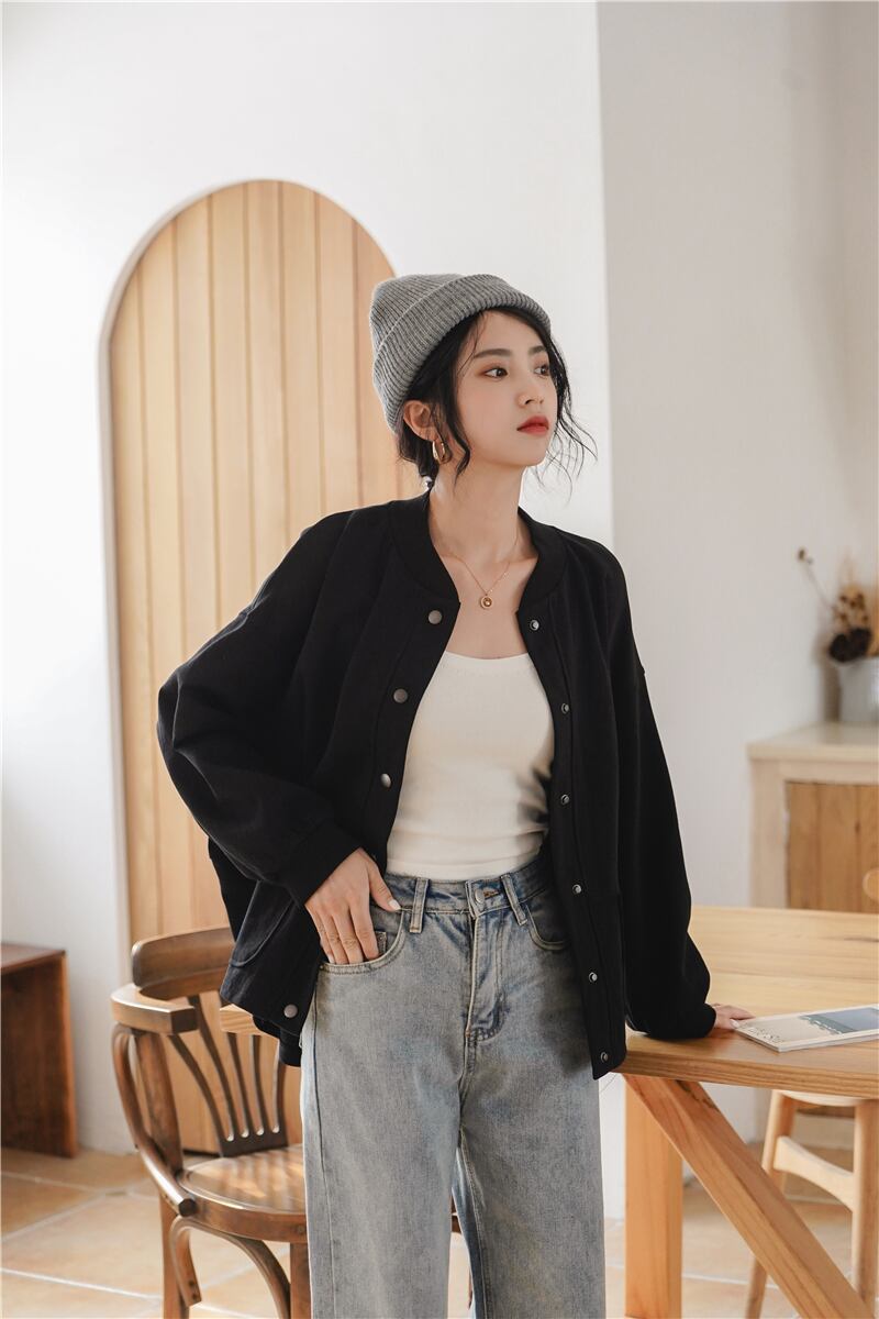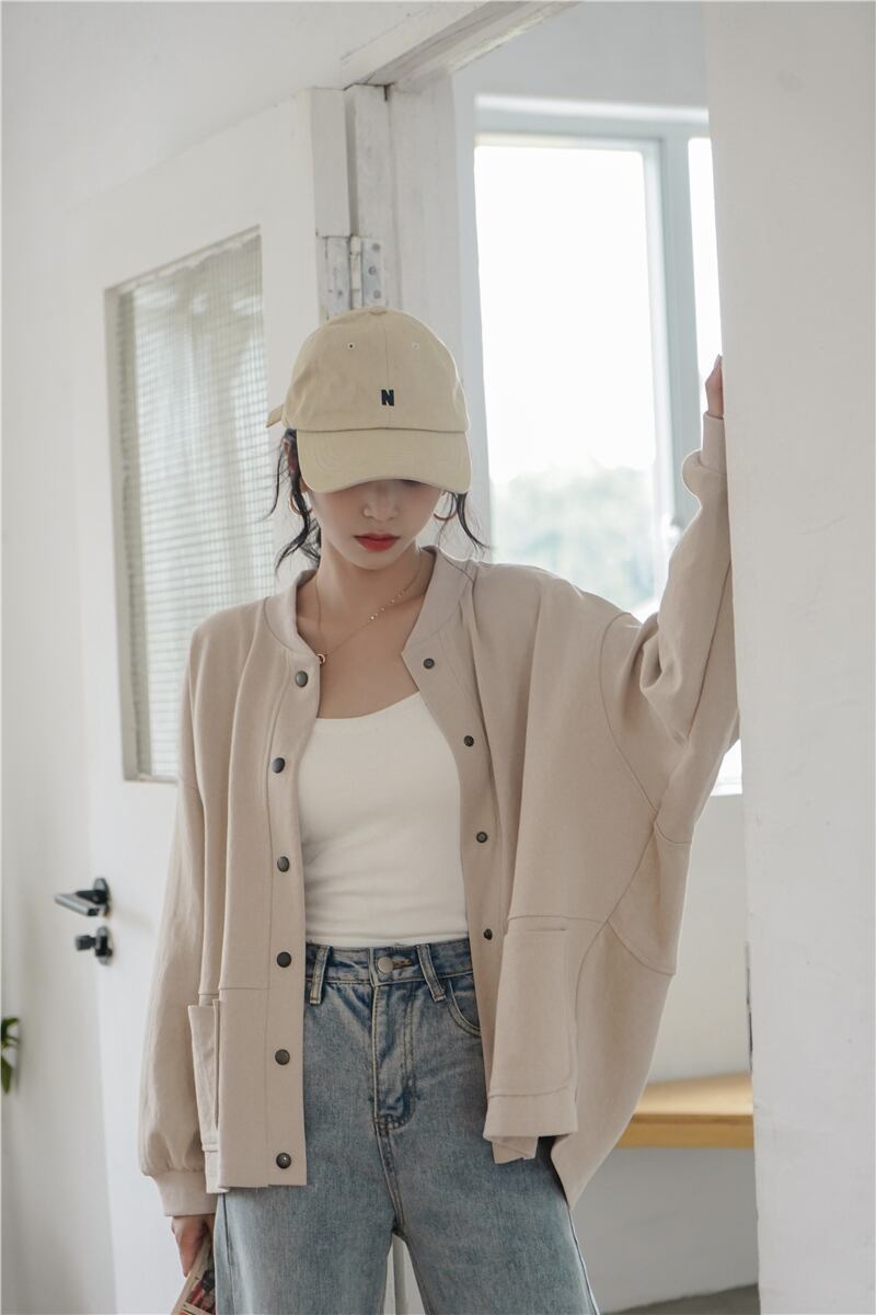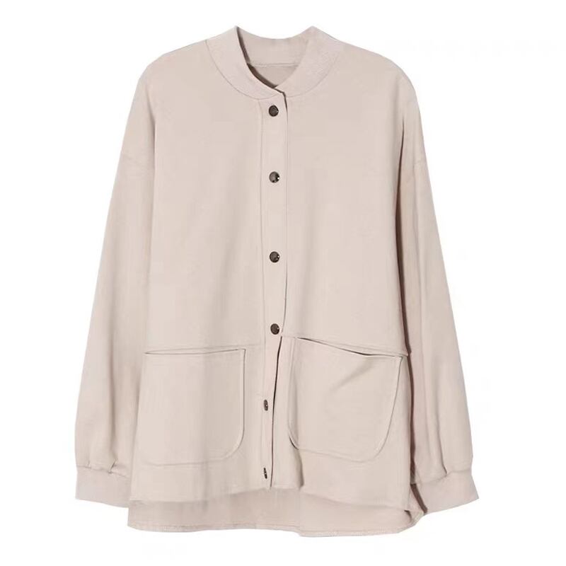 アウター ブルゾン シャンパー 上着 ミディアム丈 袖あり 長袖 ドロップショルダー ノーカラー アシンメトリー ポケット スナップボタン 前開き 大人可愛い きれいめ シンプル カジュアル 大人 上品 お洒落 かっこいい 大人女子 こなれ感 ラフ マニッシュ 主役級 抜け感 無地 春 夏 秋 20代 30代 40代 ママ 学生 通学 デート お出かけ 女子会 休日 旅行 着回し 普段使い 重ね着 楽ちん 暖かい 体系カバー 定番 トレンド 流行 インスタ映え サイズ ゆったり アプリコット ブラック