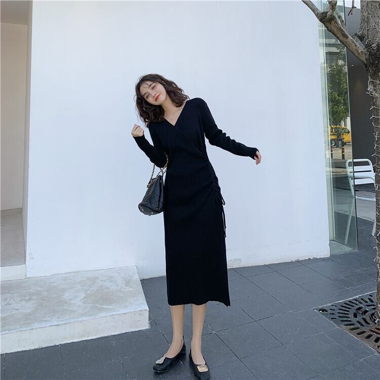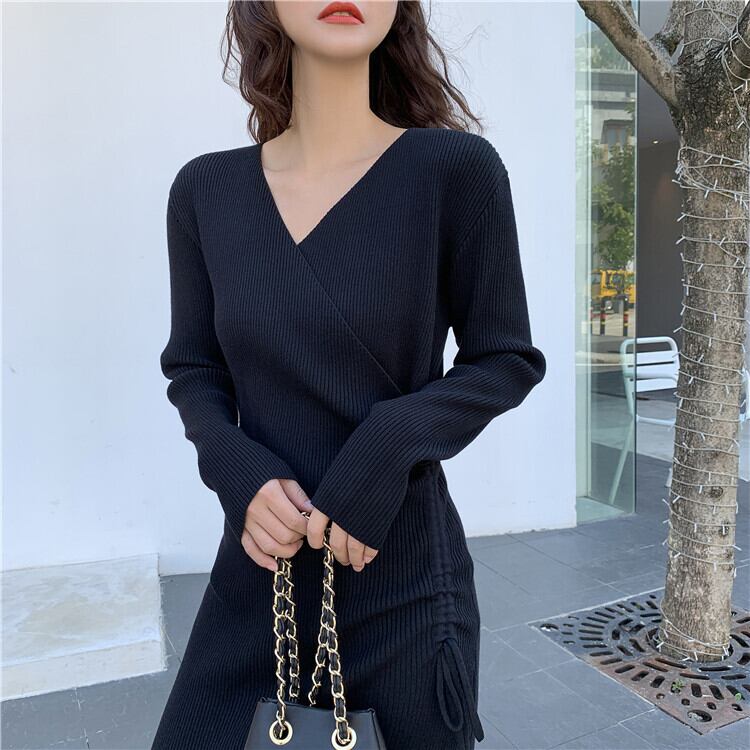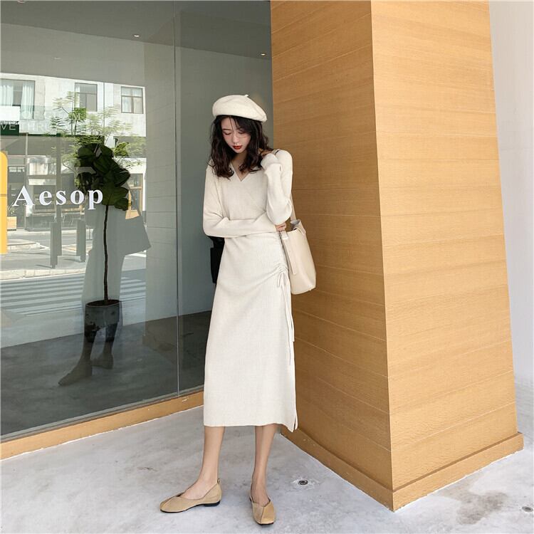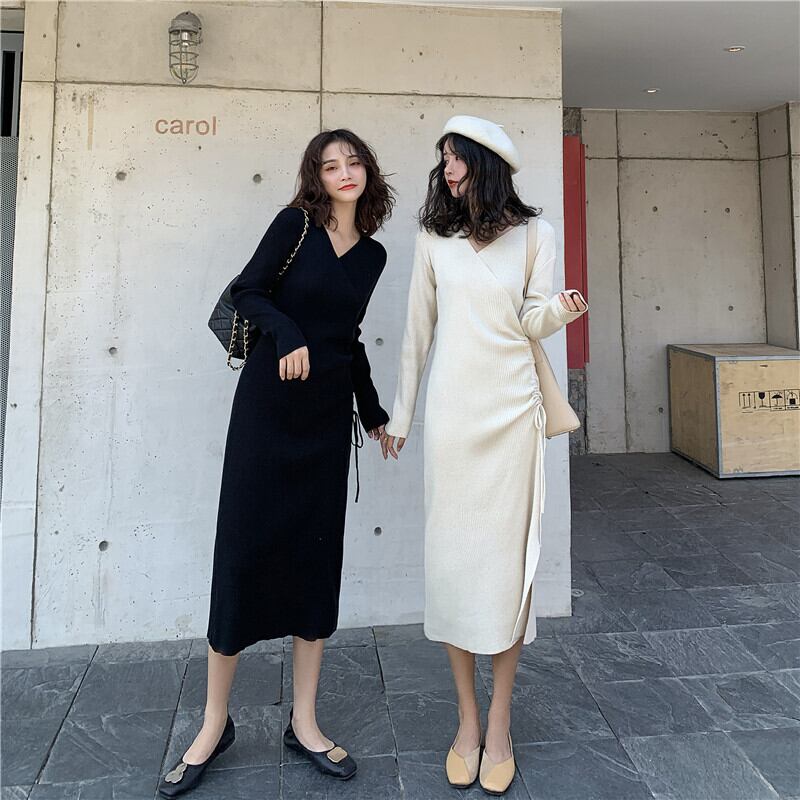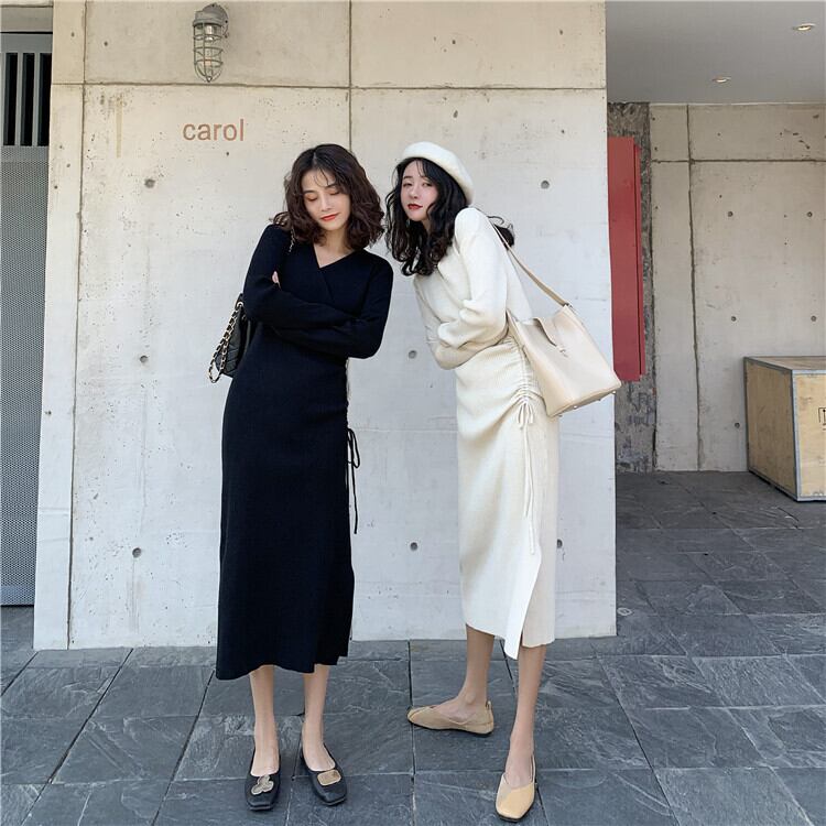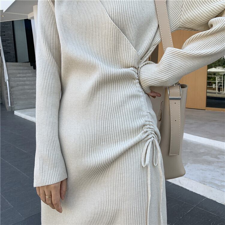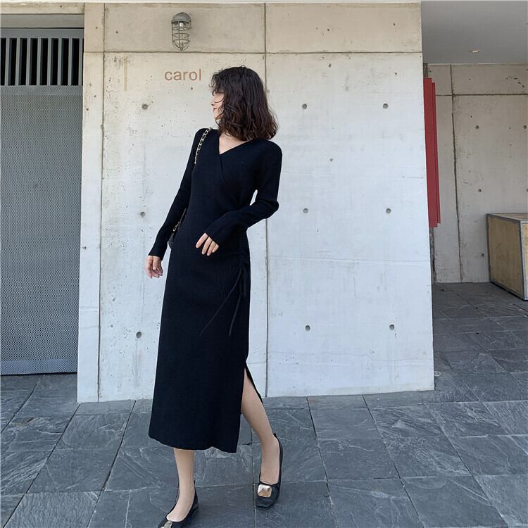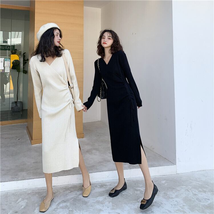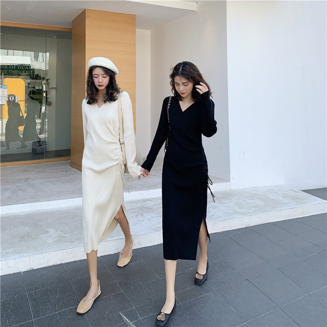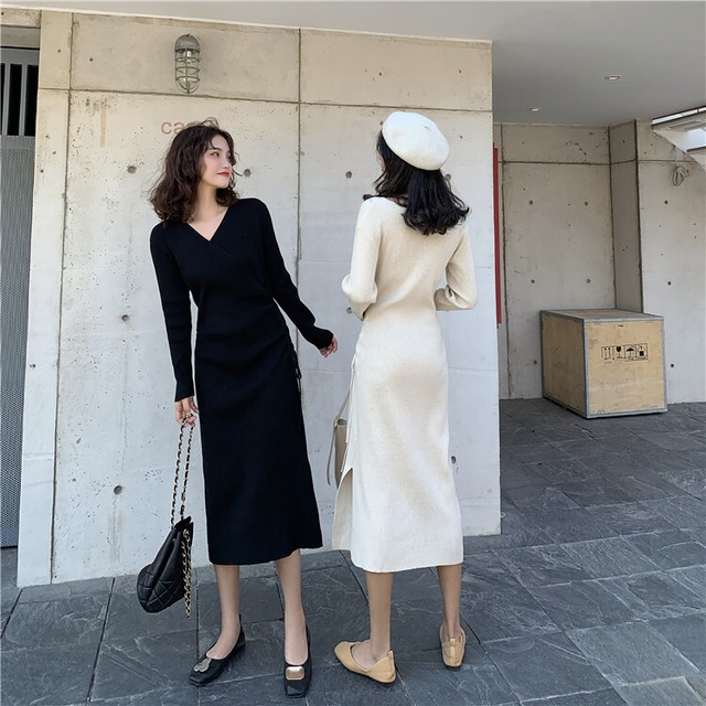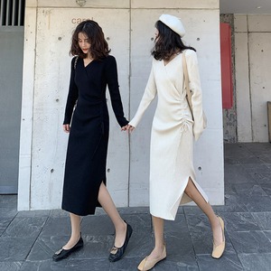 スリットワンピース ミモレ丈ワンピース スリットスカート ミモレ丈 膝下 袖あり 長袖 Vネック 襟なし スリム タイト 細身 ストレート スマート 大人 シンプル カジュアル フォーマル 大人 おしゃれ お洒落 かっこいい 大人可愛い スポーティー クール 無地 春 夏 秋 冬10代 20代 30代 40代 レディース 女性用 通学 デート お出かけ 女子会 休日 イベント リゾート 旅行 クリスマス 着回し 普段使い お揃い 韓国 韓国系 ファッション S M L XL ホワイト ブラックS