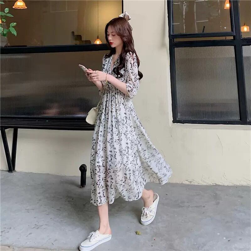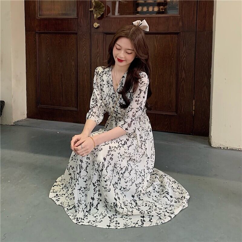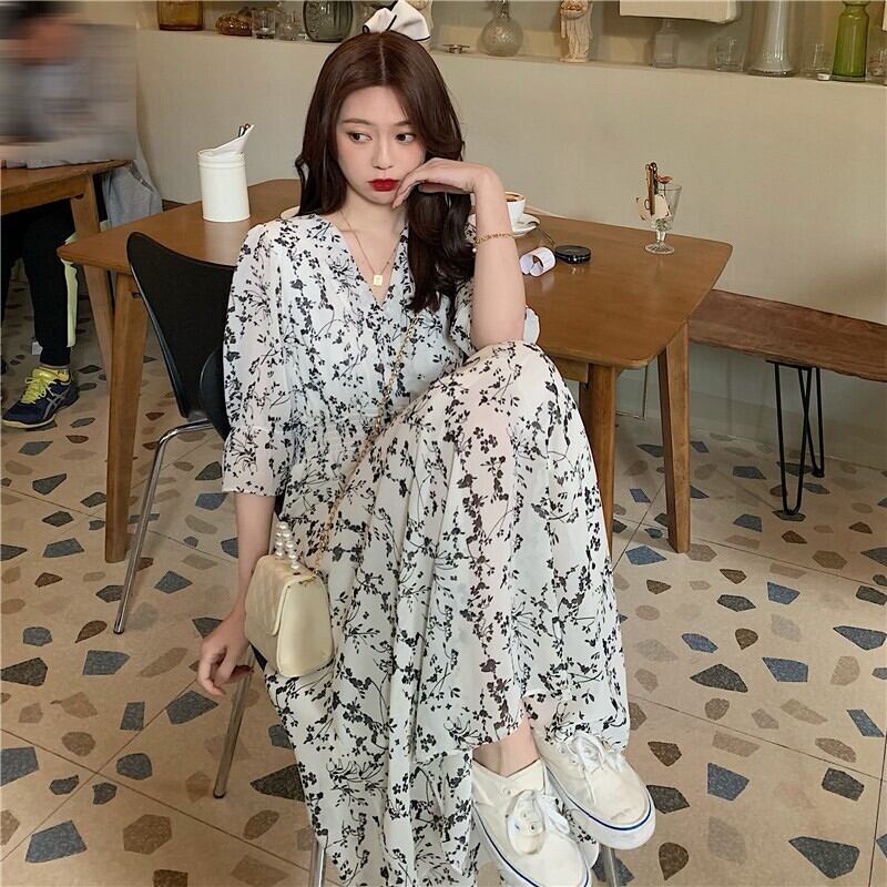 ワンピース ロング ロング丈 袖あり 5分袖 Vネック 大人可愛い きれいめ シンプル 大人 上品 おしゃれ キュート ガーリー エレガント 主役級 存在感 フラワー 春 夏 秋 10代 20代 30代 40代 50代 60代 レディース 女性用 ママ OL 学生 デート お出かけ 女子会 休日 アウトドア パーティー イベント リゾート 旅行 海 普段使い 双子 韓国 ファッション スタイル モテ インスタ映え S M L XL 2XL 3XL 4XL フラワー