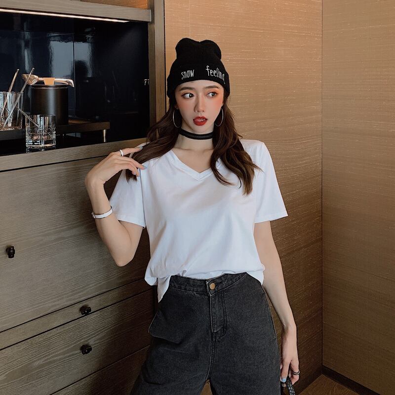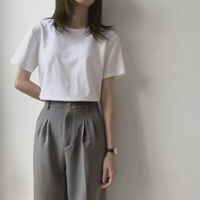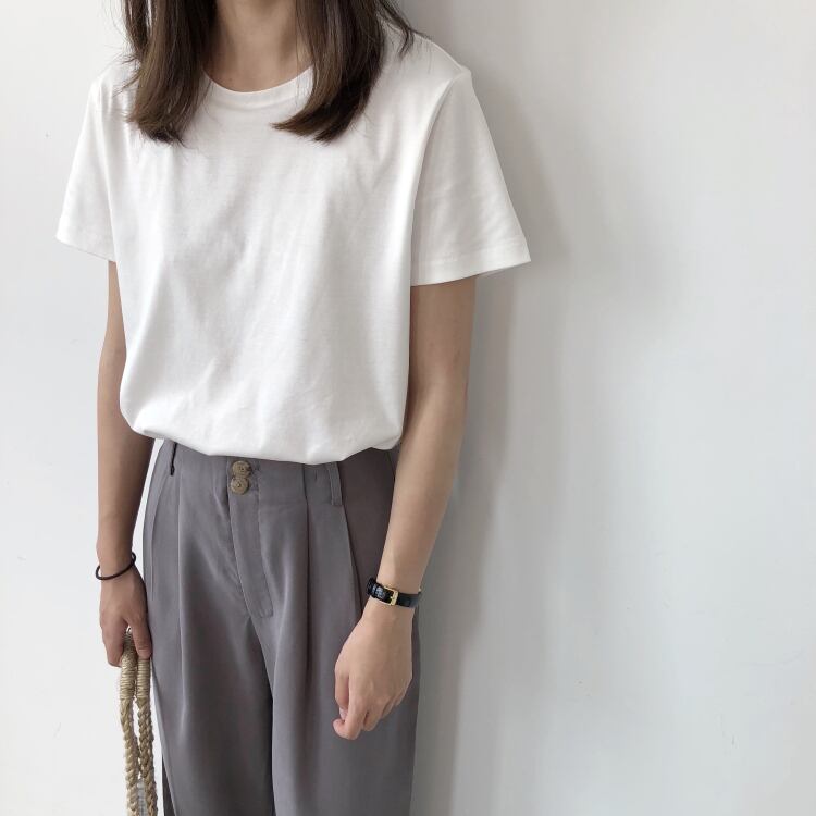 シンプルな白シャツのラウンドネックとVネックをご用意しました