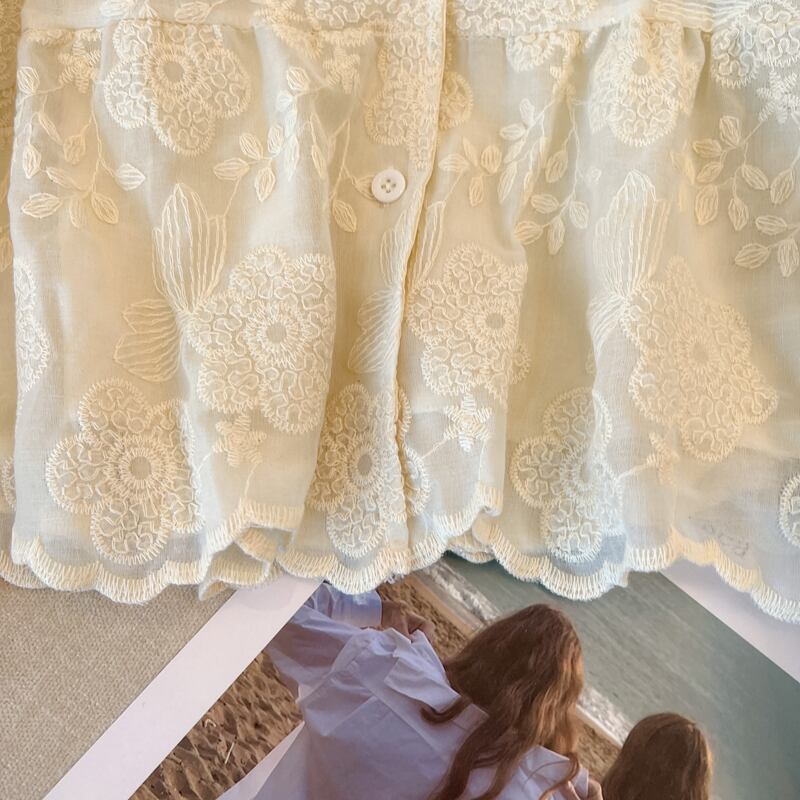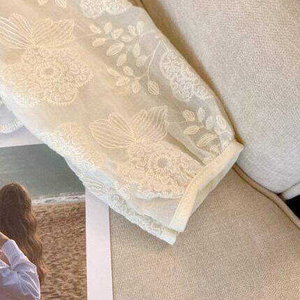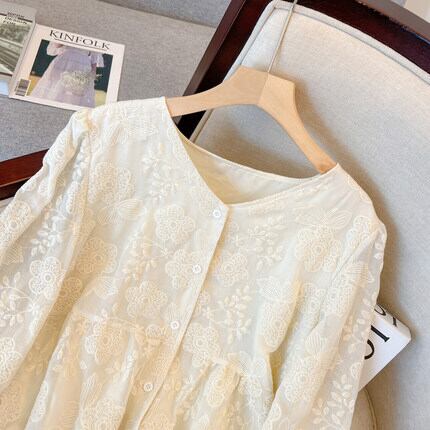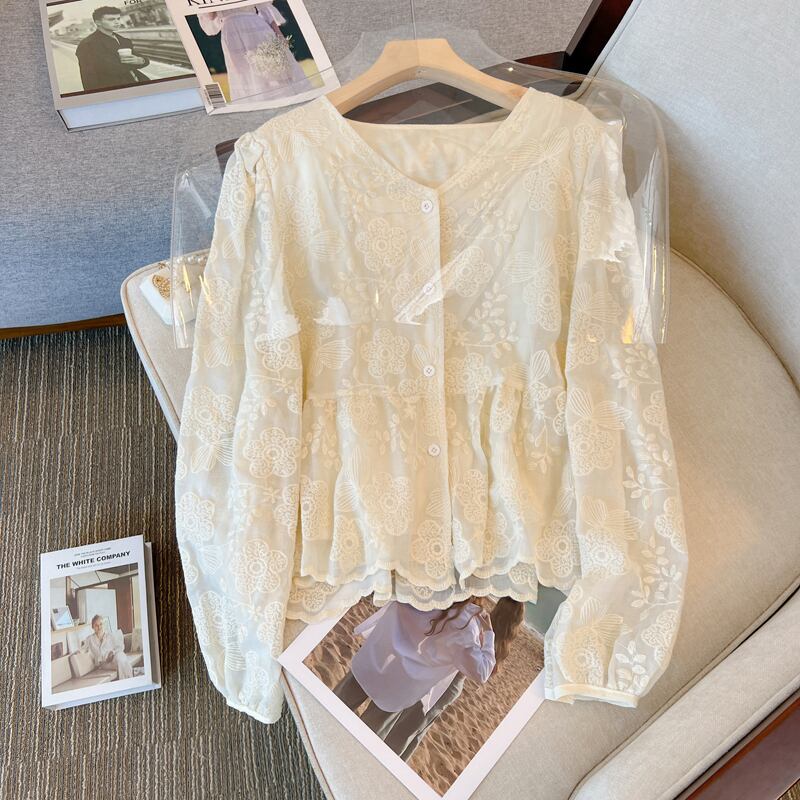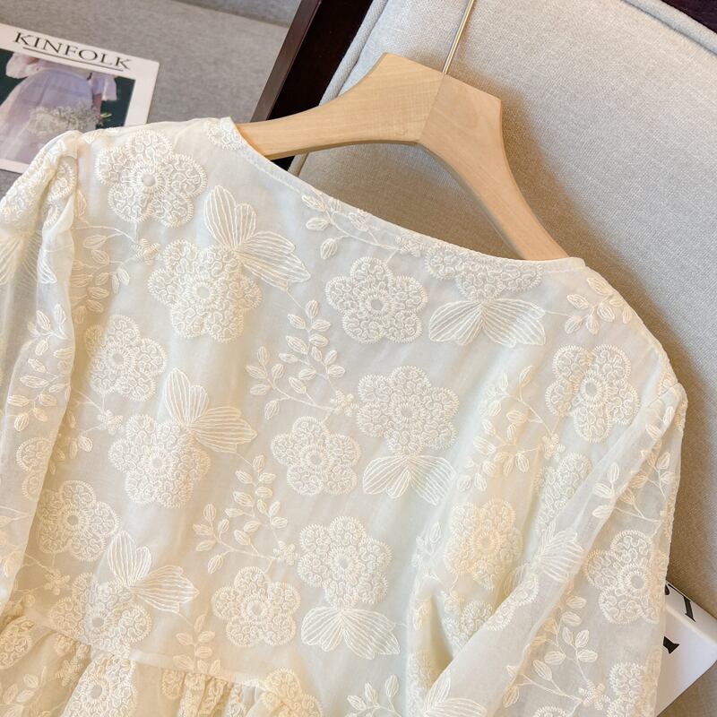 刺繍が特徴的なパフスリーブシャツ。
