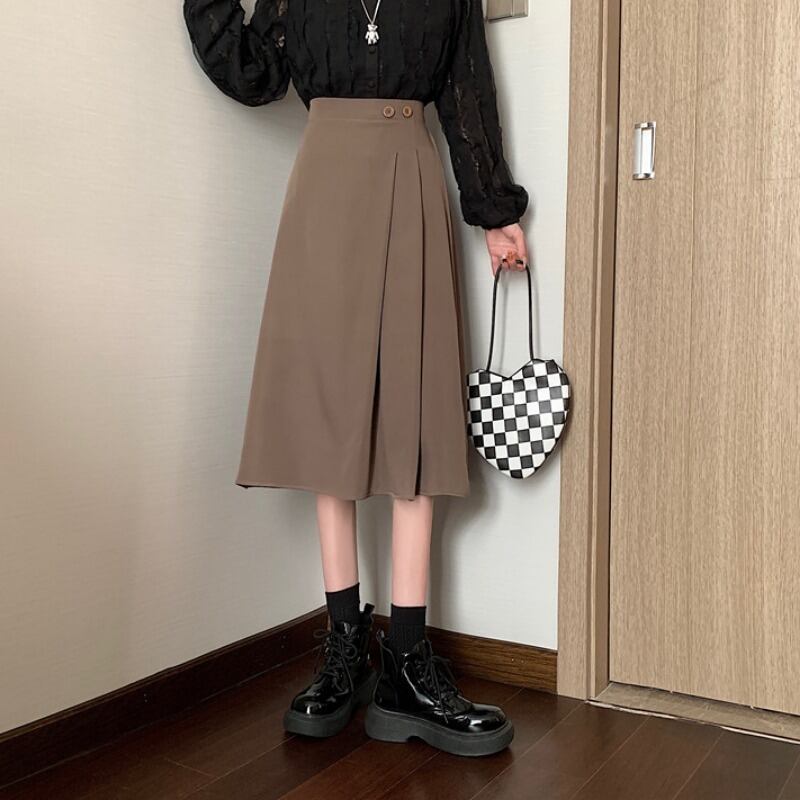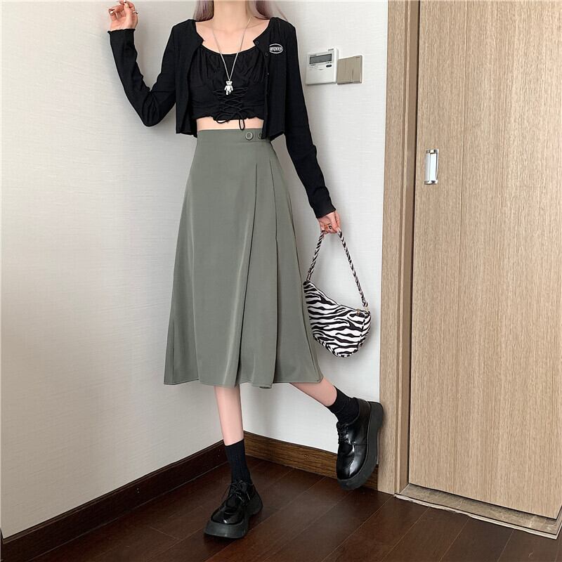 膝下丈スカート タックスカート クラシックスカート 膝下丈 スリム ストレート スマート 大人 シンプル カジュアル フォーマル 大人 おしゃれ お洒落 かっこいい 大人可愛い 無地 春 夏 秋 冬 20代 30代 40代 50代 レディース 女性用 通勤 OL 通学 デート お出かけ 女子会 休日 イベント リゾート 旅行 クリスマス 着回し 普段使い お揃い 韓国 韓国系 ファッション M L アプリコット ブラック カーキ グリーン