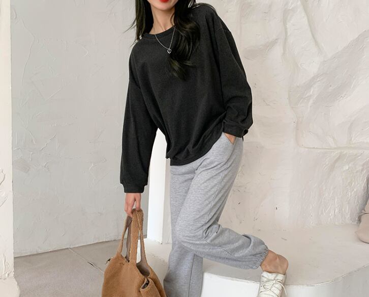 トップス スウェット 上着 スウェットシャツ ショート丈 袖あり 長袖 ラウンドネック ストレート ルーズ きれいめ シンプル カジュアル おしゃれ お洒落 かっこいい ラフ クール 無地 秋 冬 10代 20代 レディース 女性用 女の子 お出かけ 休日 運動 アウトドア テーマパーク 水族館 映画館 カフェ カラオケ ドライブ ショッピング フェス 普段使い ファッション コーデ 楽ちん 定番 ワンサイズ 黒 ブラック
