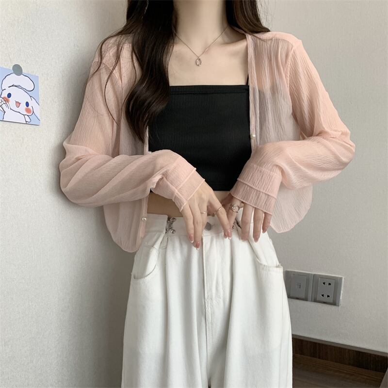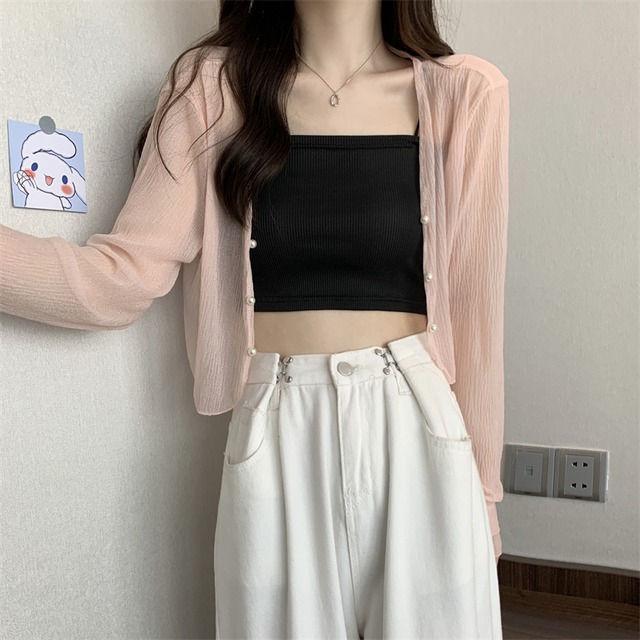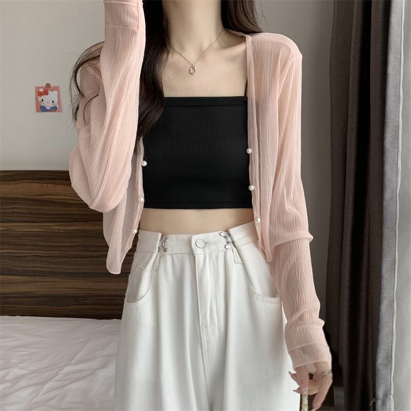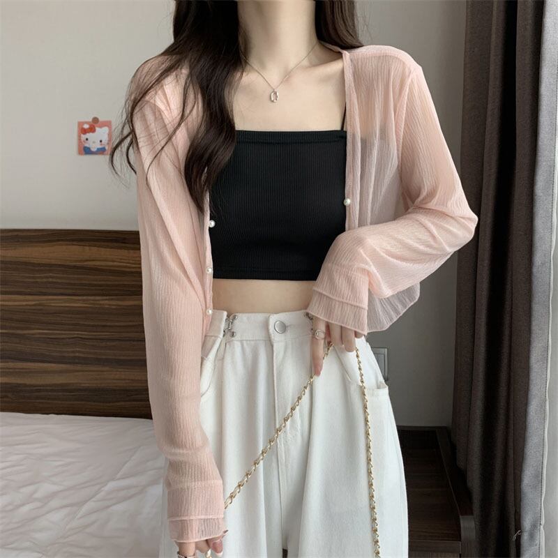 トップス カーディガン 羽織り ショート丈 袖あり 長袖 萌袖 Vネック スリム パールボタン 前開き 透け感 シースルー 薄手 大人可愛い きれいめ シンプル カジュアル フェミニン 大人 上品 お洒落 大人女子 こなれ感 ラフ ガーリー セクシー 主役級 とろみ感 抜け感 無地 春 夏 秋 20代 30代 40代 ママ 通勤 学生 通学 デート お出かけ 女子会 休日 旅行 着回し 普段使い 重ね着 楽ちん モテ 体系カバー 定番 トレンド 流行 インスタ映え ワンサイズ ゆったり ホワイト ピンク