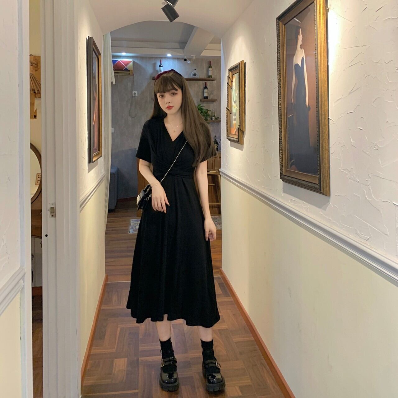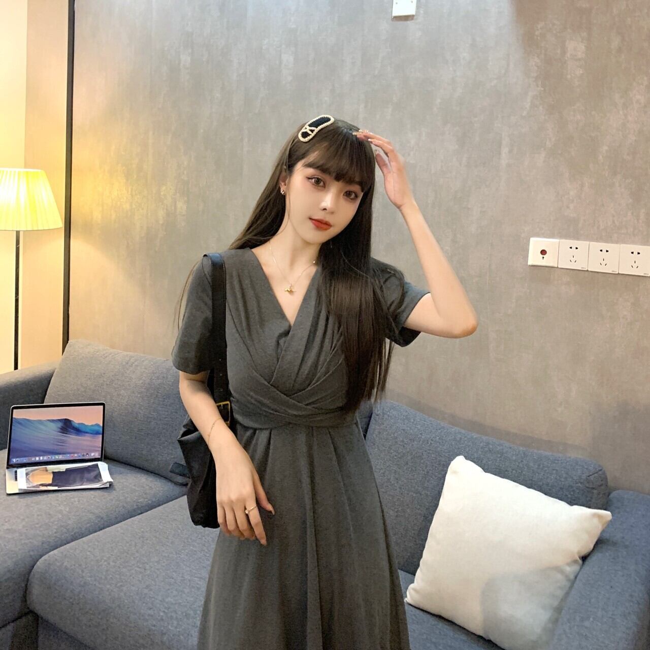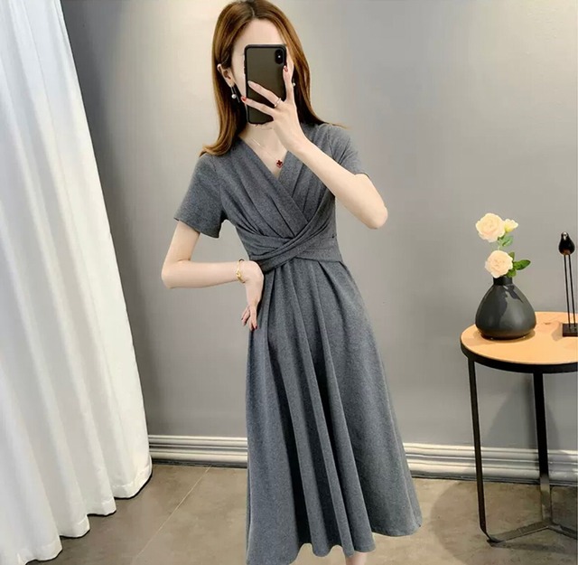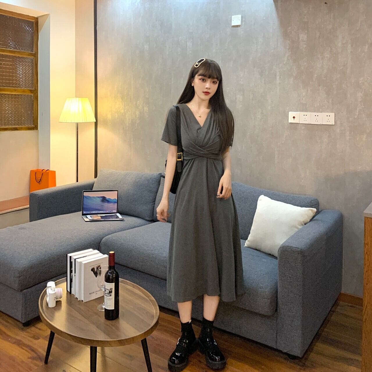 ワンピース ロング 袖あり 半袖 Vネック Aライン 大人可愛い きれいめ シンプル 大人 上品 おしゃれ レトロ ラフ クール モード系 エレガント 主役級 存在感 無地 春 夏 秋 10代 20代 30代 40代 50代 60代 レディース 女性用 ママ OL 学生 デート お出かけ 女子会 休日 アウトドア パーティー 旅行 海 普段使い 双子 韓国 ファッション スタイル モテ インスタ映え S M L XL 黒 ブラック 灰色 グレー