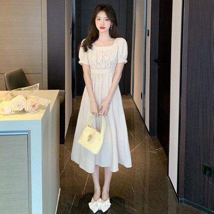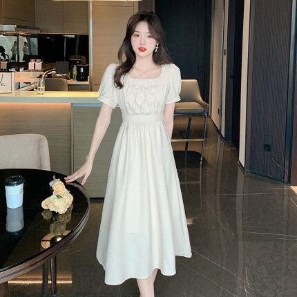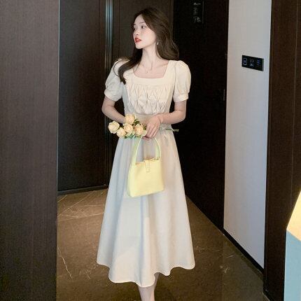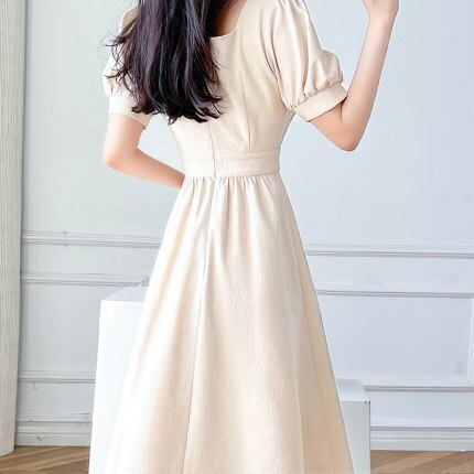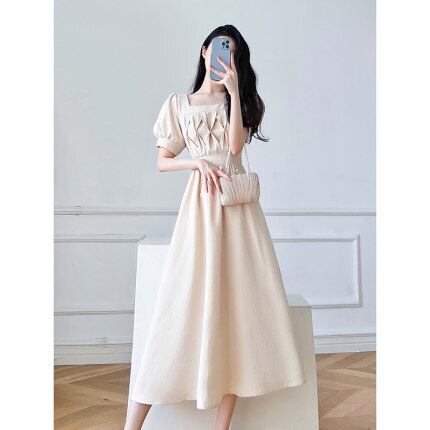 ドレスワンピース パーティードレス ロング丈ドレス 舞台衣装 フレアワンピース ダンス衣装 袖あり 襟なし 半袖 スクエアネック プリンセスライン スリム 細身 ウエストライン かわいい 大人可愛い きれいめ 大人 おしゃれ お洒落 エレガント 無地 10代 20代 30代 40代 レディース 女性用 デート お出かけ 女子会 インスタ映え 春 夏 秋 冬 結婚式 2次会1.5次会 パーティ クリスマス S M L XL アプリコット