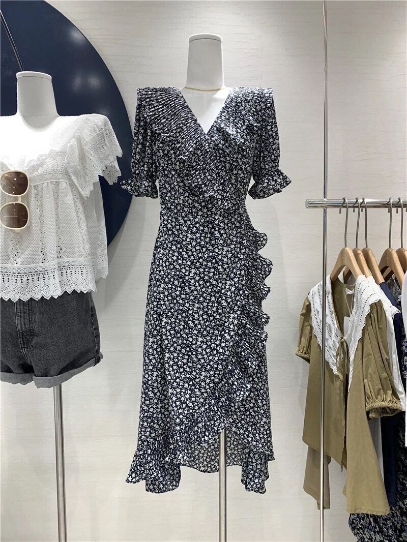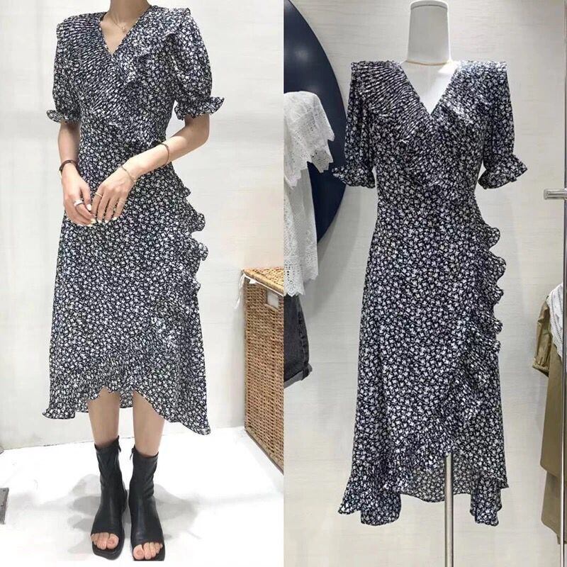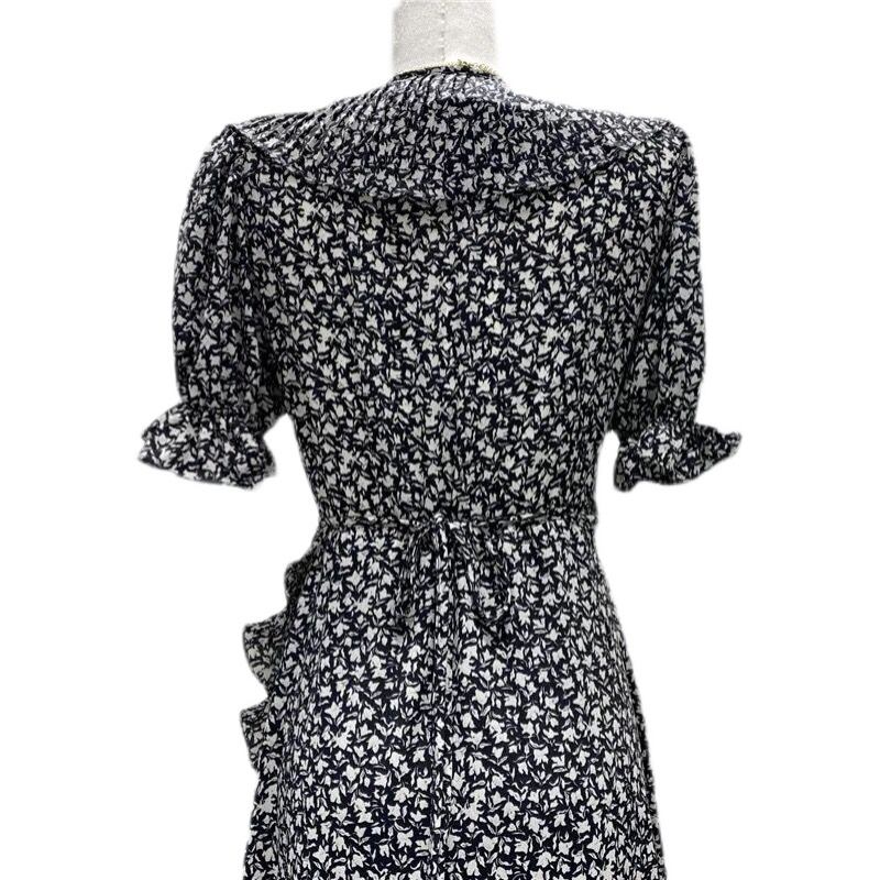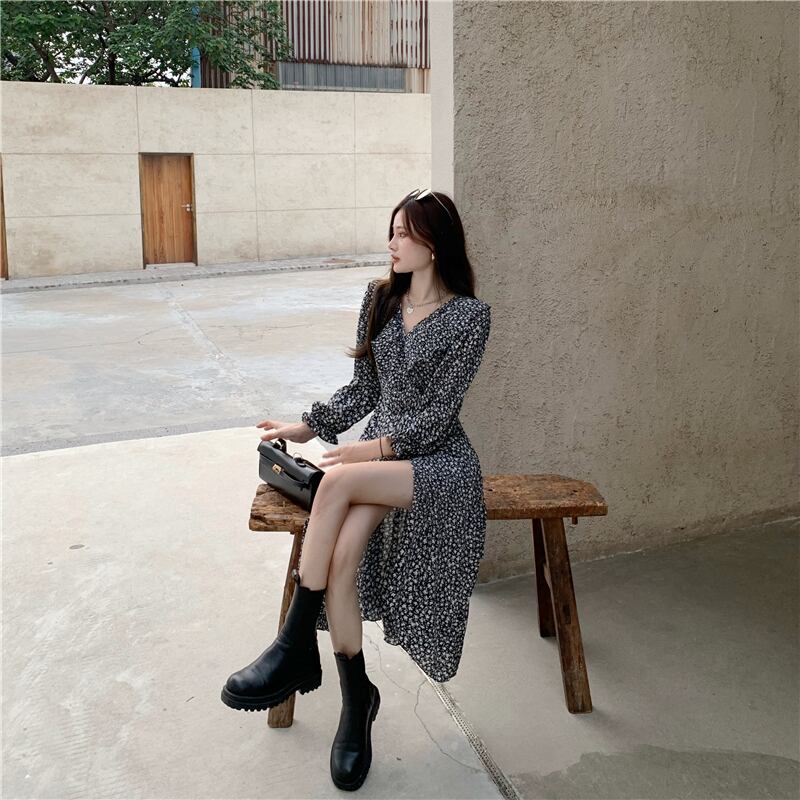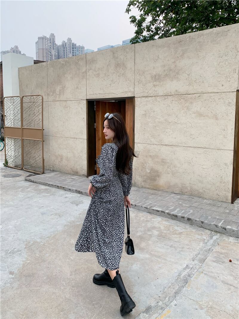 花柄ワンピース 膝下スカート 膝下丈 袖あり 長袖 Vネック スリム ストレート スマート フリル ウエスト調節 かわいい 大人可愛い カジュアル 大人 おしゃれ お洒落 大人 花柄 春 夏 秋 冬10代 20代 30代 レディース 女性用 女の子 学生 通学 デート お出かけ 女子会 お泊まり 休日 イベント リゾート 旅行 海 プール 着回し 普段使い お揃い 韓国 韓国系 ファッション 楽ちん S M L 花柄
