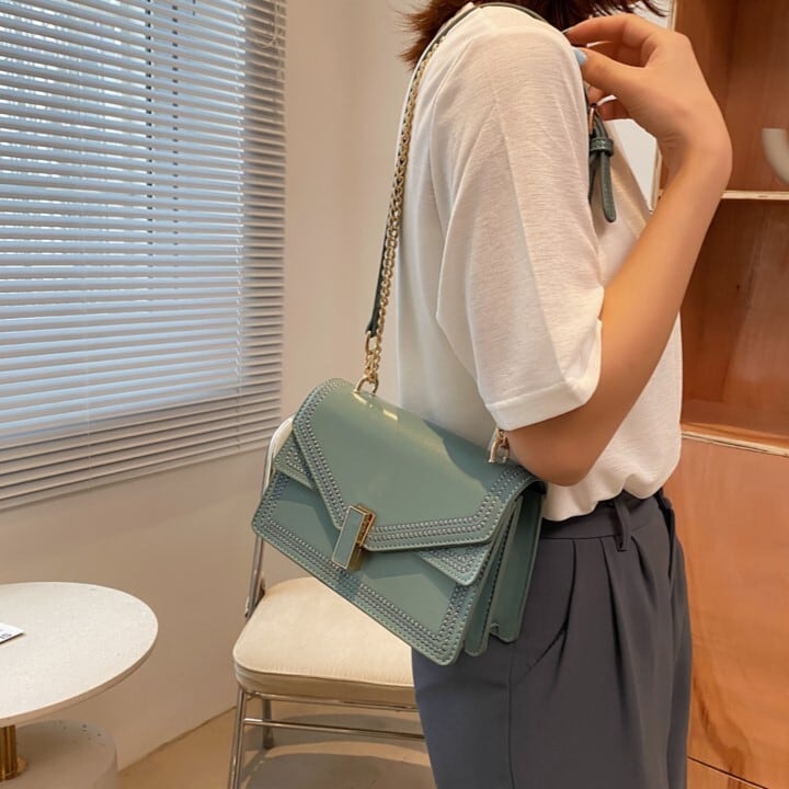 中が仕切られ収納しやすいスクエア型のハンドバッグです