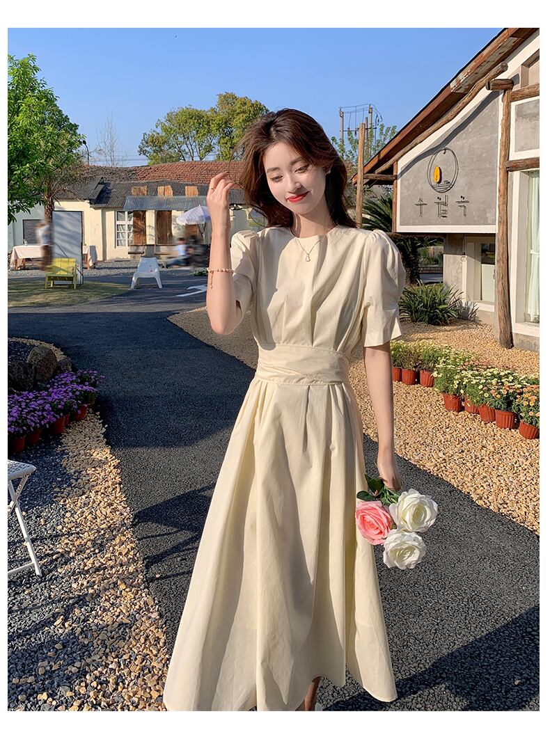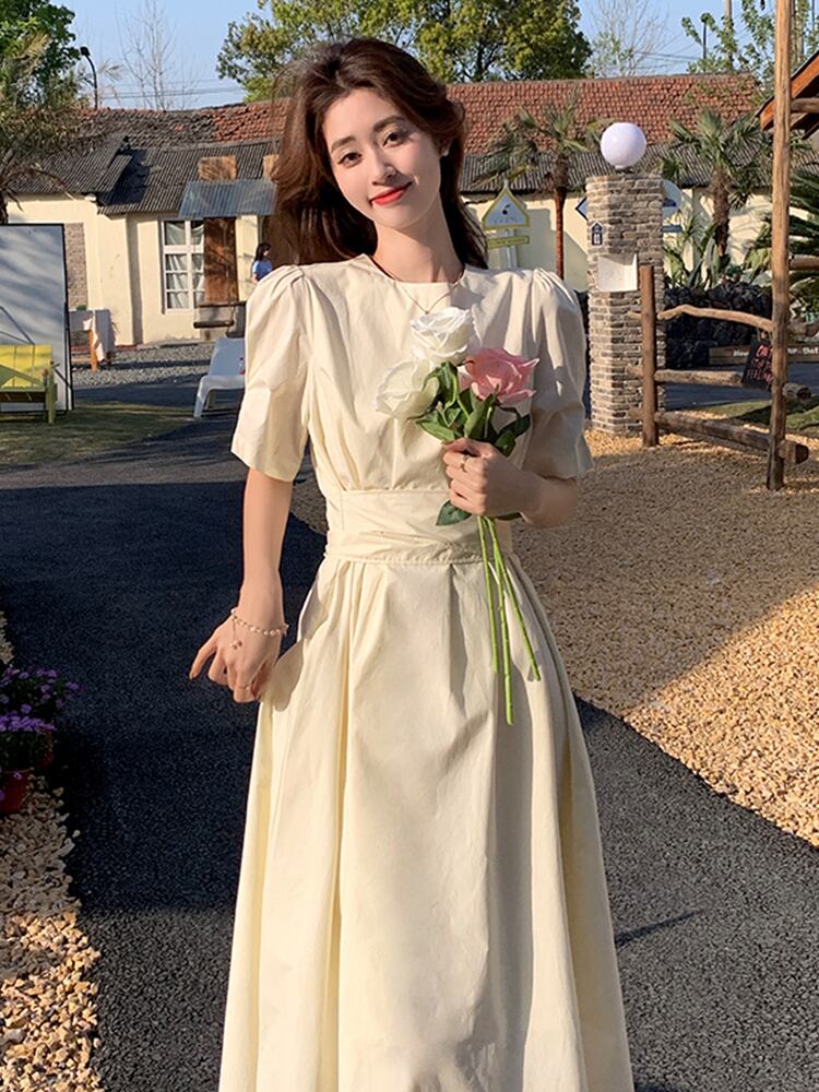 ワンピース デート フレアワンピース 膝下 ロング ロング丈 袖あり 半袖 かわいい 大人可愛い きれいめ シンプル カジュアル 大人 上品 おしゃれ お洒落 主役級 存在感 無地 夏 10代 20代 レディース 女性用 OL 学生 デート お出かけ 公園デビュー 女子会 お泊まり 休日 旅行 着回し 普段使い ファッション コーデ 楽ちん トレンド 流行 インスタ映え S M L XL 2XL アプリコット