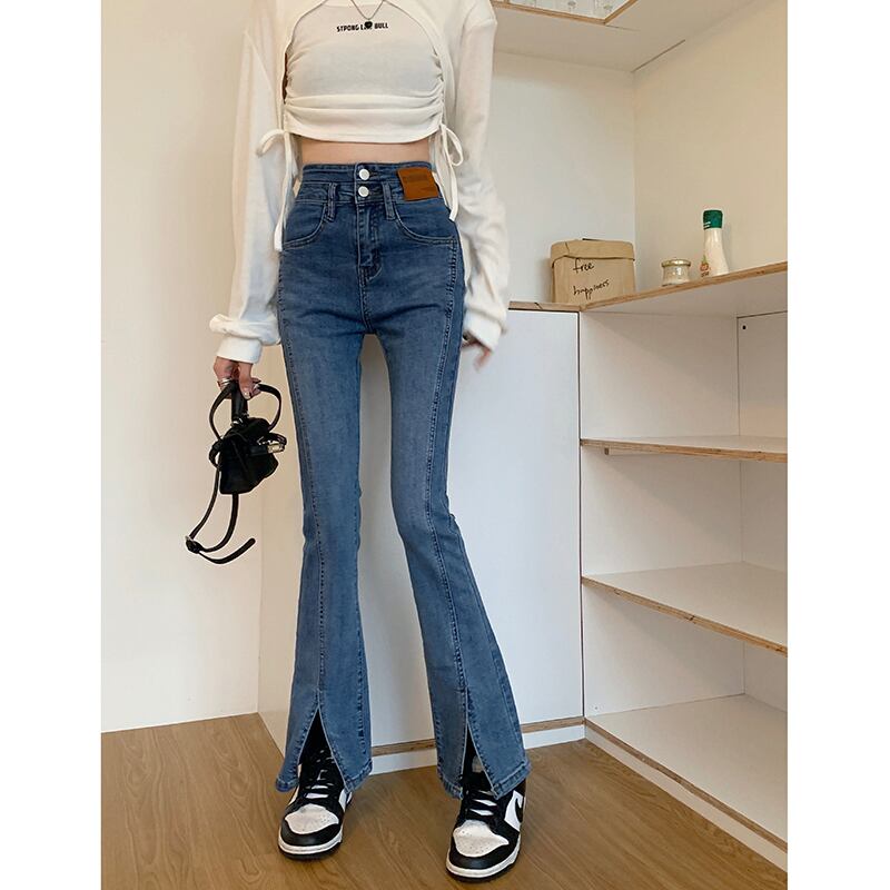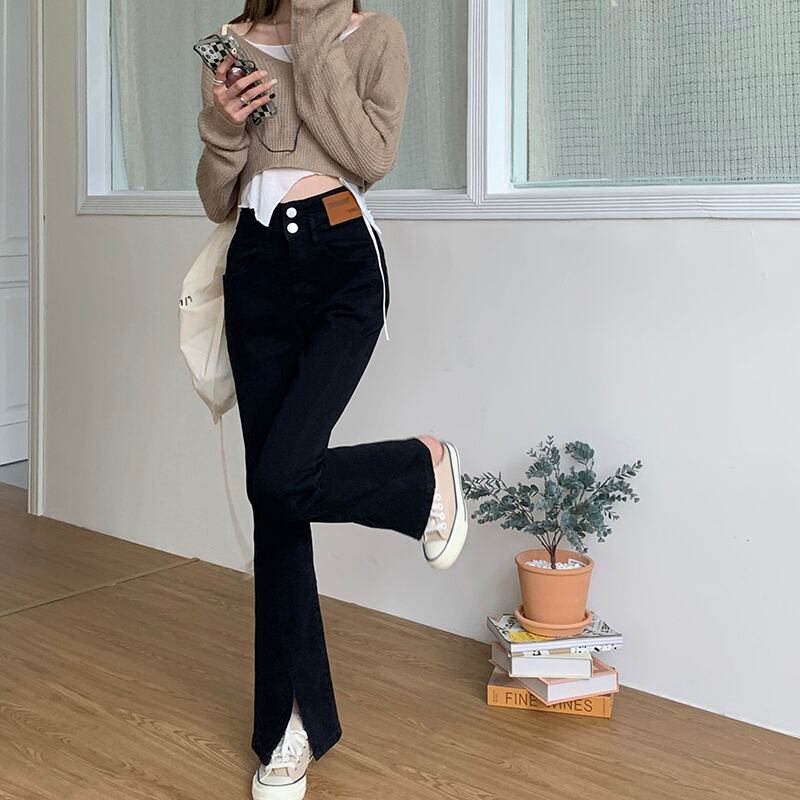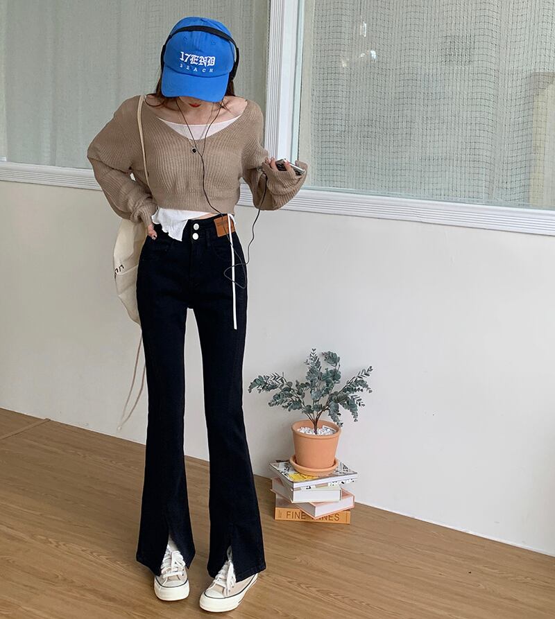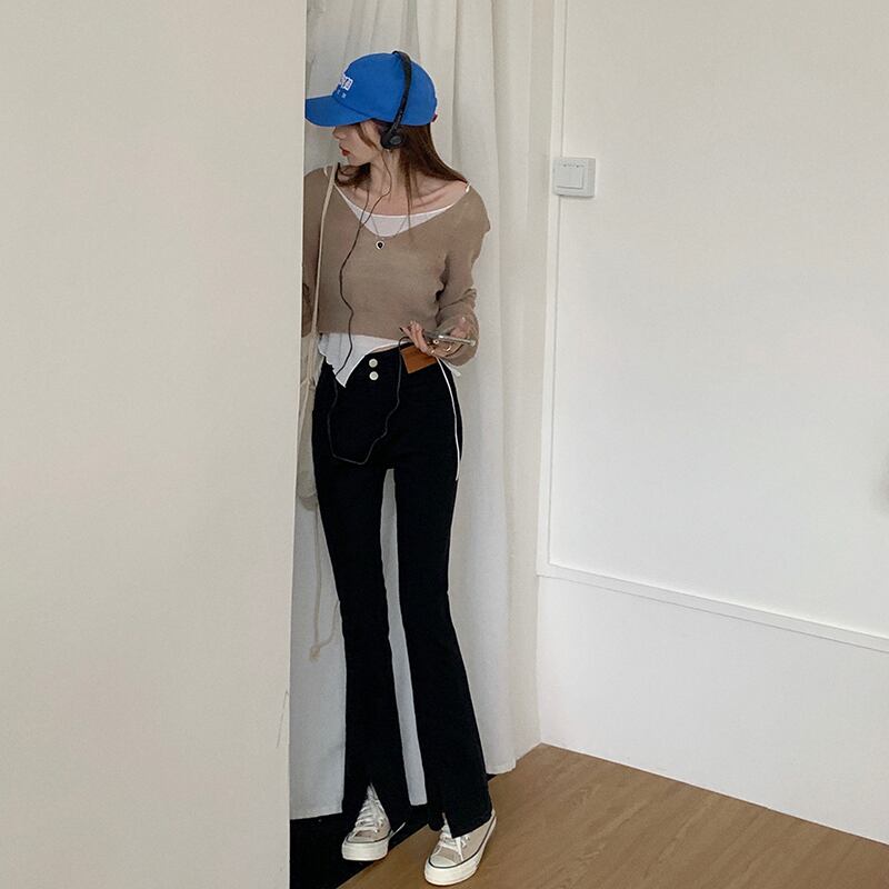スリットが特徴的なフレアパンツ。