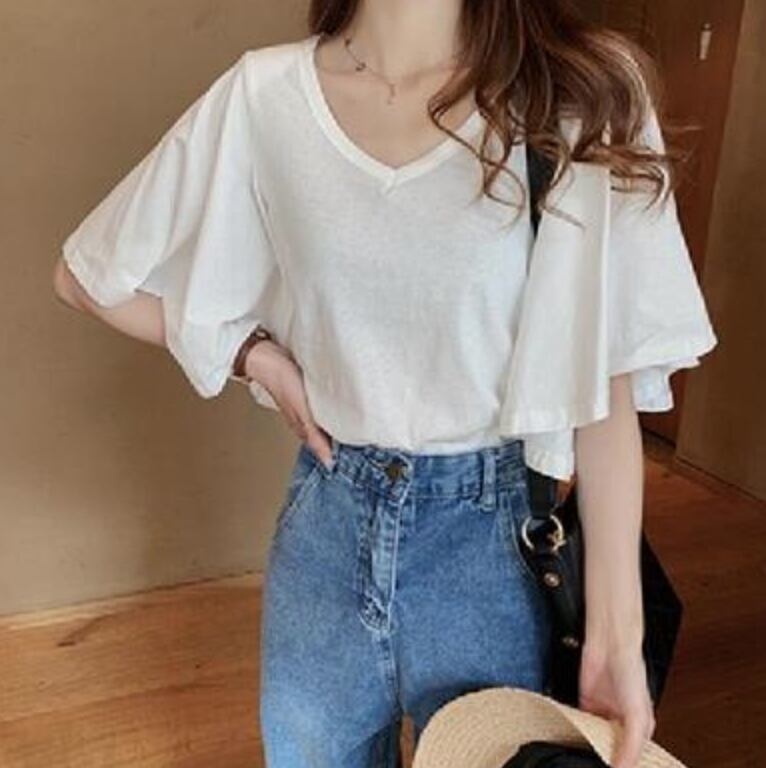 トップス デート シャツ ブラウス カットソー 袖あり 半袖 Vネック かわいい 大人可愛い きれいめ シンプル カジュアル 大人 上品 おしゃれ お洒落 主役級 存在感 無地 夏 10代 20代 レディース 女性用 OL 学生 デート お出かけ 公園デビュー 女子会 お泊まり 休日 旅行 着回し 普段使い ファッション コーデ 楽ちん トレンド 流行 インスタ映え L XL 2XL 3XL 4XL 大きい 大きめ ビッグサイズ ゆったり ゆる 白 ホワイト 黒 ブラック