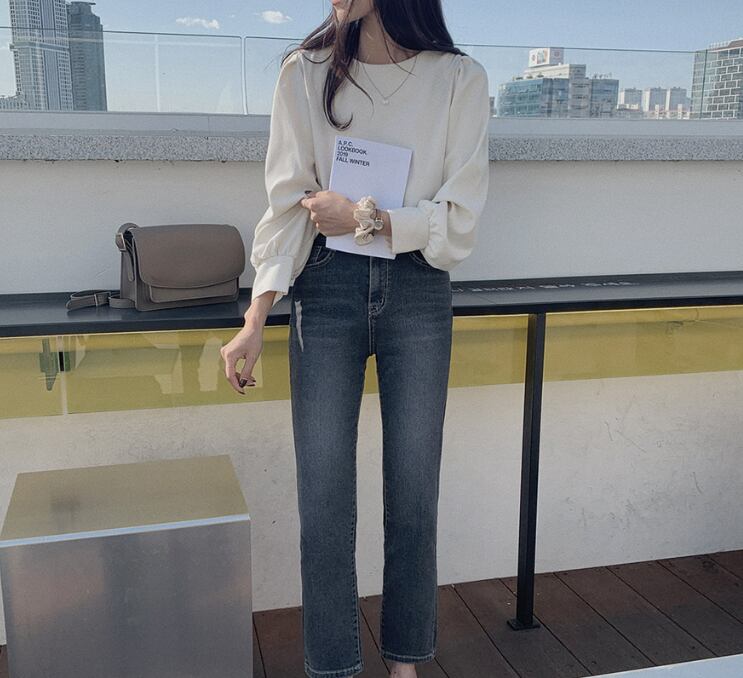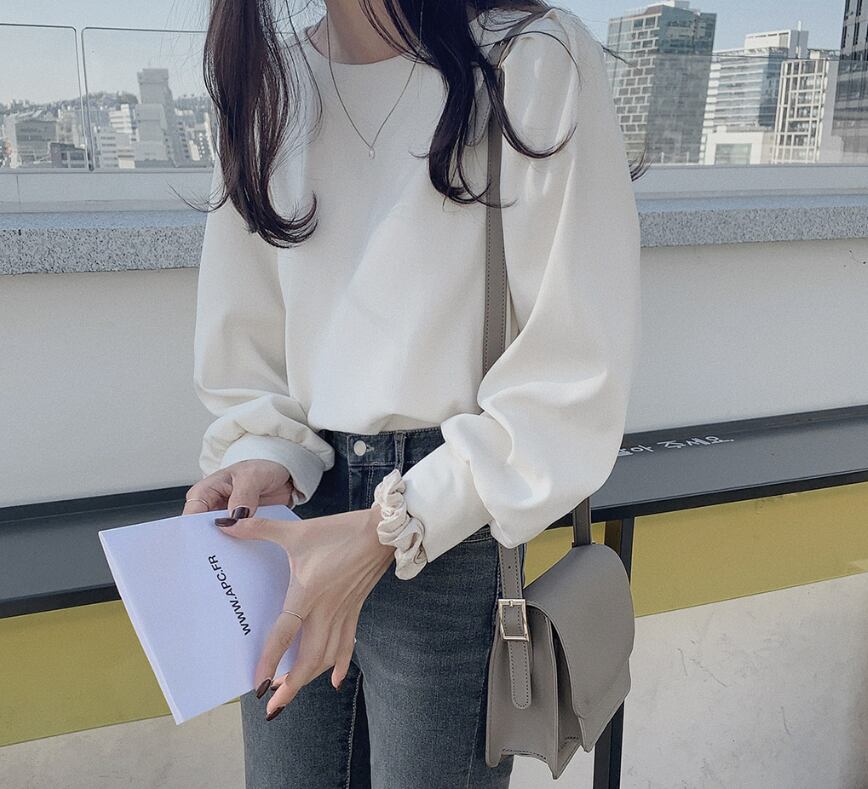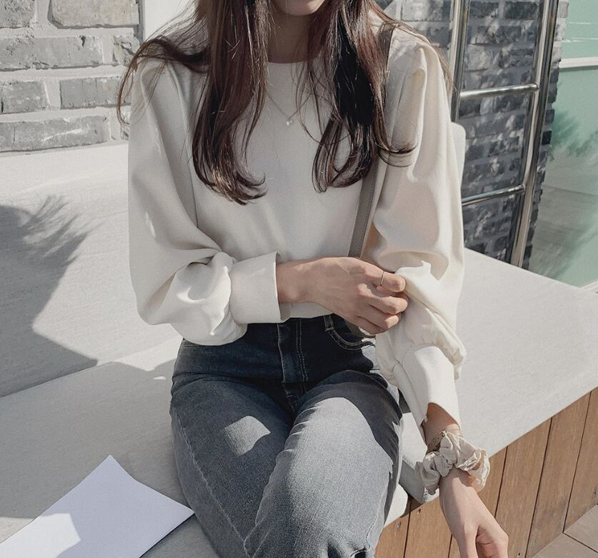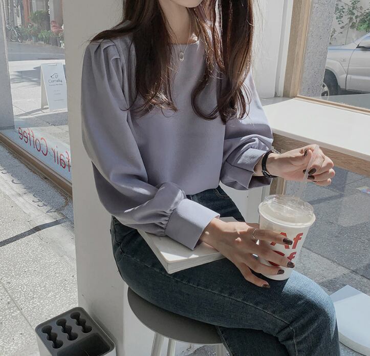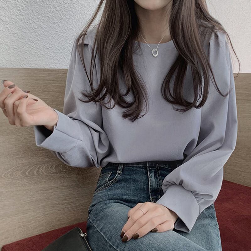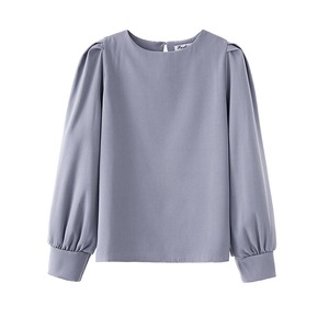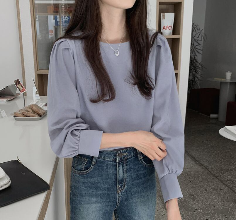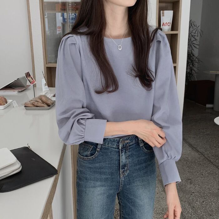 トップス ブラウス 袖あり 長袖 ラウンドネック 襟なし ストレート ふんわり かわいい カジュアル おしゃれ お洒落 レトロ 大人可愛い ラブリー キュート フォーマル 主役級 無地 春 夏 秋 冬 誕生日 母の日 10代 20代 30代 40代 レディース 女性用 通勤 OL ママ 学生 通学 デート 公園デビュー ガーデン 着回し 普段使い 重ね着 お揃い 双子 韓国 コーデ 楽ちん ギフト S M L アプリコット ブルー