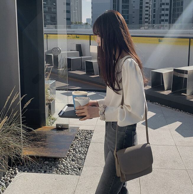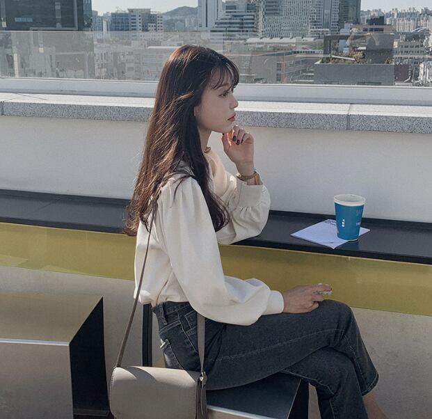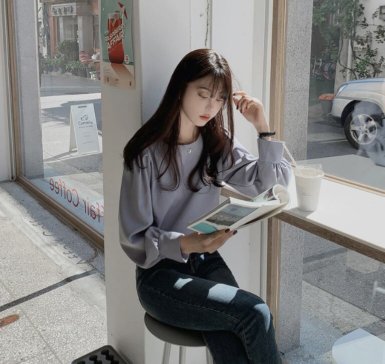 パフショルダーが可愛いふんわりブラウス。