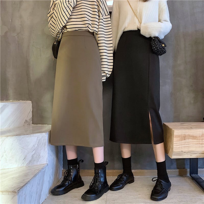スカート ボトムス ロングスカート タイトスカート ミモレ ミモレ丈 ロング ロング丈 かわいい 大人可愛い きれいめ シンプル 大人 上品 おしゃれ お洒落 レトロ 大人可愛い 大人女子 無地 秋 冬 10代 20代 30代 40代 レディース 女性用 オフィス ビジネス OL 通勤 学生 通学 デート お出かけ 女子会 休日 旅行 S M L 黒 ブラック 茶色 ブラウン