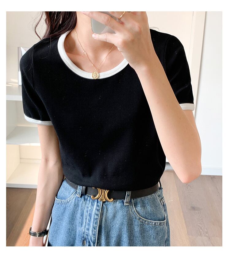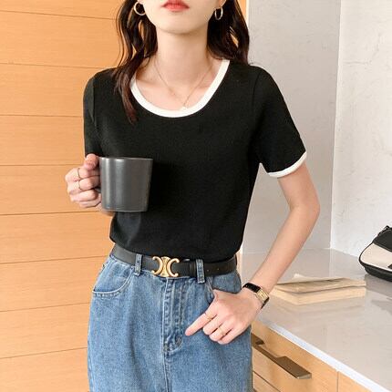 首元のにアクセントカラーが入った定番アイテム。