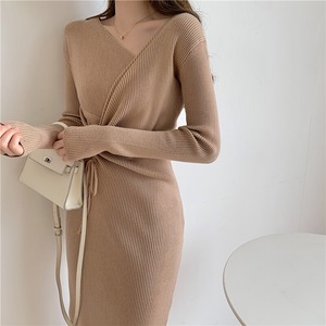 ワンピース デート ニットソー セーター 膝丈 ひざ丈 袖あり 長袖 Vネック スリム タイト 細身 かわいい 大人可愛い きれいめ シンプル カジュアル 大人 上品 おしゃれ お洒落 主役級 存在感 無地 春 秋 10代 20代 レディース 女性用 OL 学生 デート お出かけ 公園デビュー 女子会 お泊まり 休日 旅行 着回し 普段使い ファッション コーデ 楽ちん トレンド 流行 インスタ映え S M L XL 黒 ブラック ベージュ