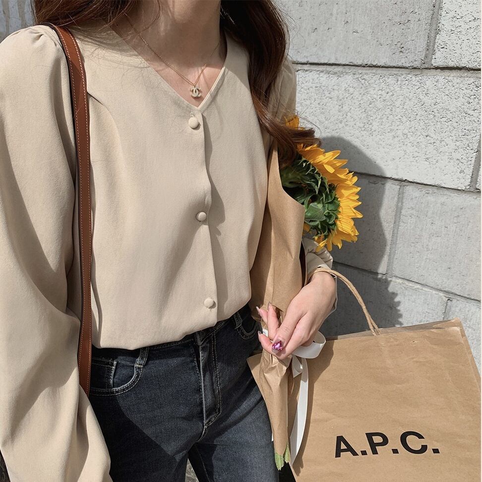 トップス シャツ ブラウス ミディアム丈 袖あり 長袖 ボリューム袖 Vネック ワイド 前開き かわいい 大人可愛い きれいめ シンプル カジュアル 大人 上品 お洒落 大人女子 こなれ感 ラフ ガーリー 主役級 とろみ感 抜け感 無地 春 秋 冬 20代 30代 40代 ママ 通勤 学生 通学 デート お出かけ 女子会 休日 旅行 着回し 普段使い 重ね着 オルチャン 楽ちん 体系カバー 定番 トレンド 流行 インスタ映え S M L ゆったり アプリコット