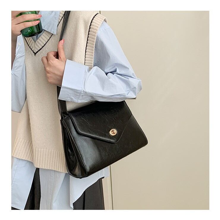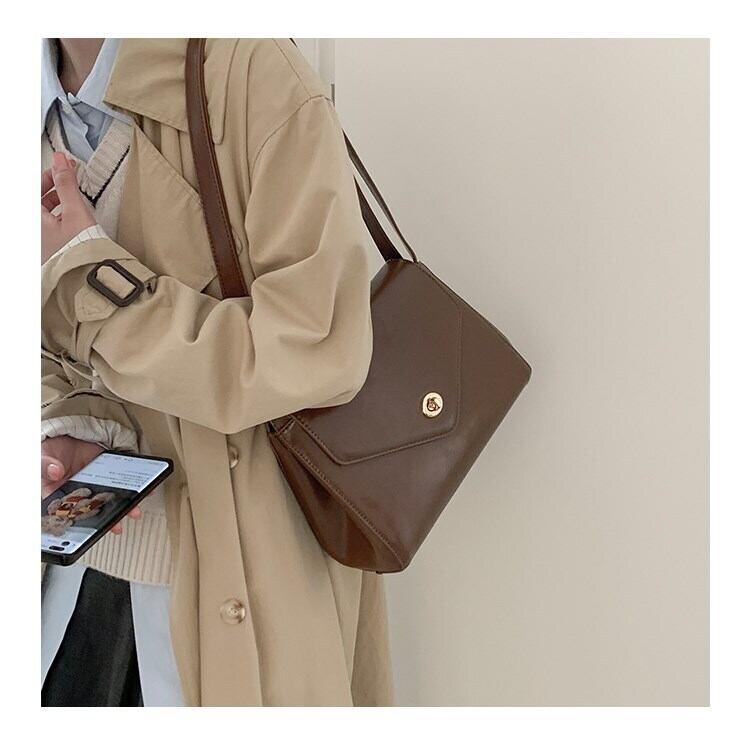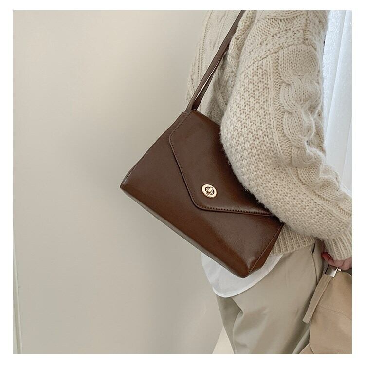 ダブルストラップのショルダーバッグです。しっかりとした形と上品な色合いでオフィススタイルにもぴったりなバッグです。