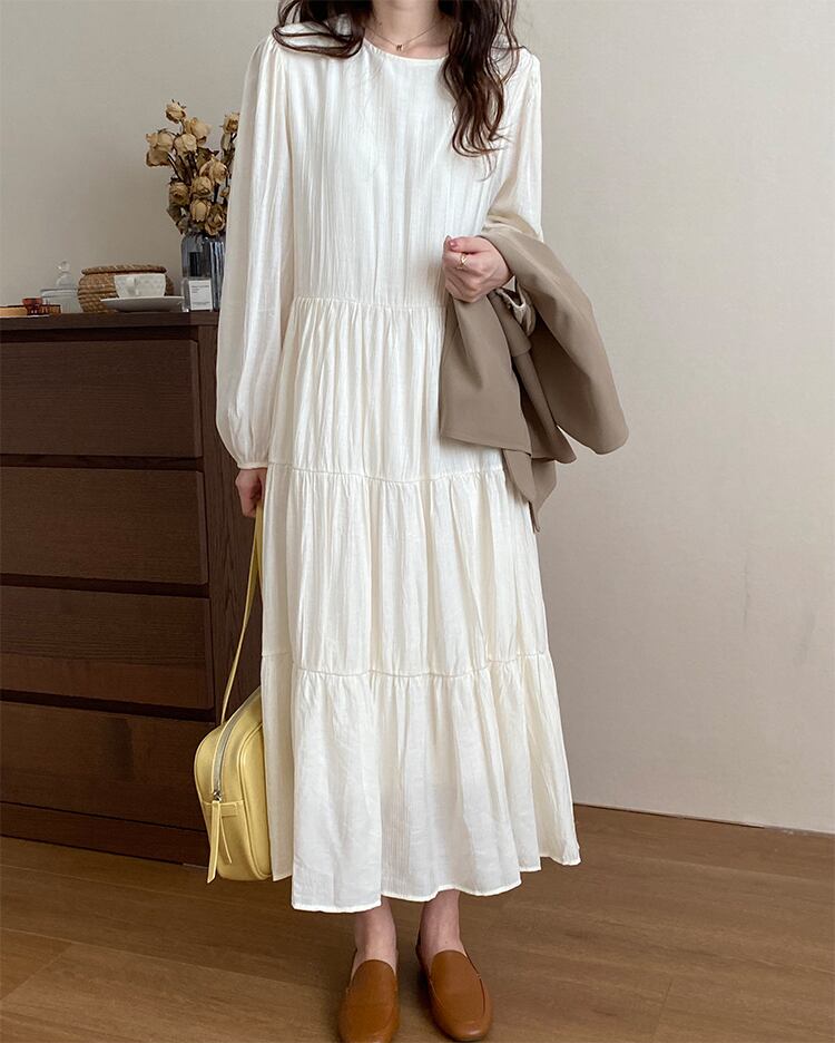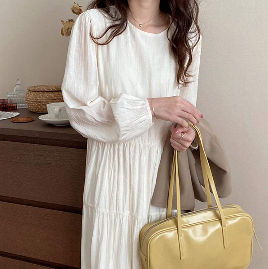 ワンピース デート フレアワンピース ロング ロング丈 袖あり 長袖 かわいい 大人可愛い きれいめ シンプル カジュアル 大人 上品 おしゃれ お洒落 主役級 存在感 春 秋 冬 10代 20代 レディース 女性用 OL 学生 デート お出かけ 公園デビュー 女子会 お泊まり 休日 旅行 着回し 普段使い ファッション コーデ 楽ちん トレンド 流行 インスタ映え フリーサイズ 白 ホワイト
