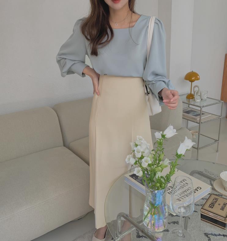 トップス デート シャツ ブラウス カットソー 袖あり 長袖 スクエアネック かわいい 大人可愛い きれいめ シンプル カジュアル 大人 上品 おしゃれ お洒落 主役級 存在感 春 秋 10代 20代 レディース 女性用 OL 学生 デート お出かけ 公園デビュー 女子会 お泊まり 休日 旅行 着回し 普段使い ファッション コーデ 楽ちん トレンド 流行 インスタ映え S M ゆったり ゆる 青 ブルー