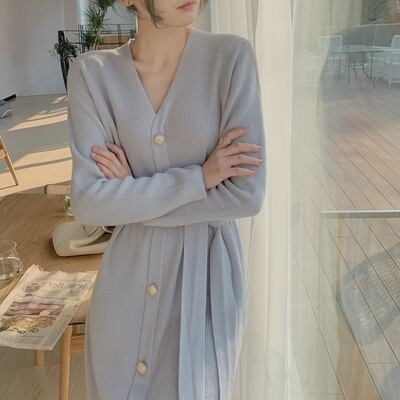 ワンピース デート ニットソー セーター フレアワンピース ロング ロング丈 袖あり 長袖 Vネック かわいい 大人可愛い きれいめ シンプル カジュアル 大人 上品 おしゃれ お洒落 主役級 存在感 夏 10代 20代 レディース 女性用 OL 学生 デート お出かけ 公園デビュー 女子会 お泊まり 休日 旅行 着回し 普段使い ファッション コーデ 楽ちん トレンド 流行 インスタ映え S M L XL ゆったり ゆる 青 ブルー アプリコット