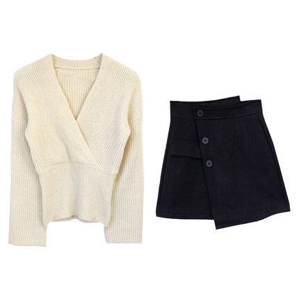 トップス スカート デート カットソー ニットソー セーター ミニスカート ショート ショート丈 袖あり 長袖 Vネック かわいい 大人可愛い きれいめ シンプル カジュアル 大人 上品 おしゃれ お洒落 主役級 存在感 10代 20代 レディース 女性用 OL 学生 デート お出かけ 公園デビュー 女子会 お泊まり 休日 旅行 着回し 普段使い ファッション コーデ 楽ちん トレンド 流行 インスタ映え L XL 2XL 3XL ゆったり ゆる 白 ホワイト 黒 ブラック
