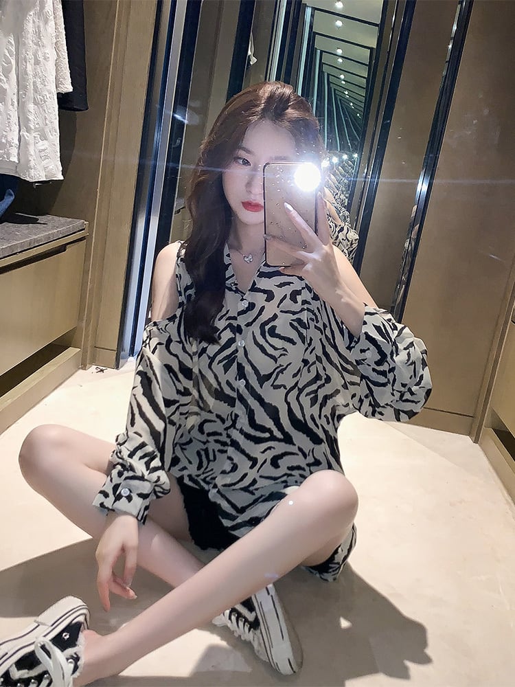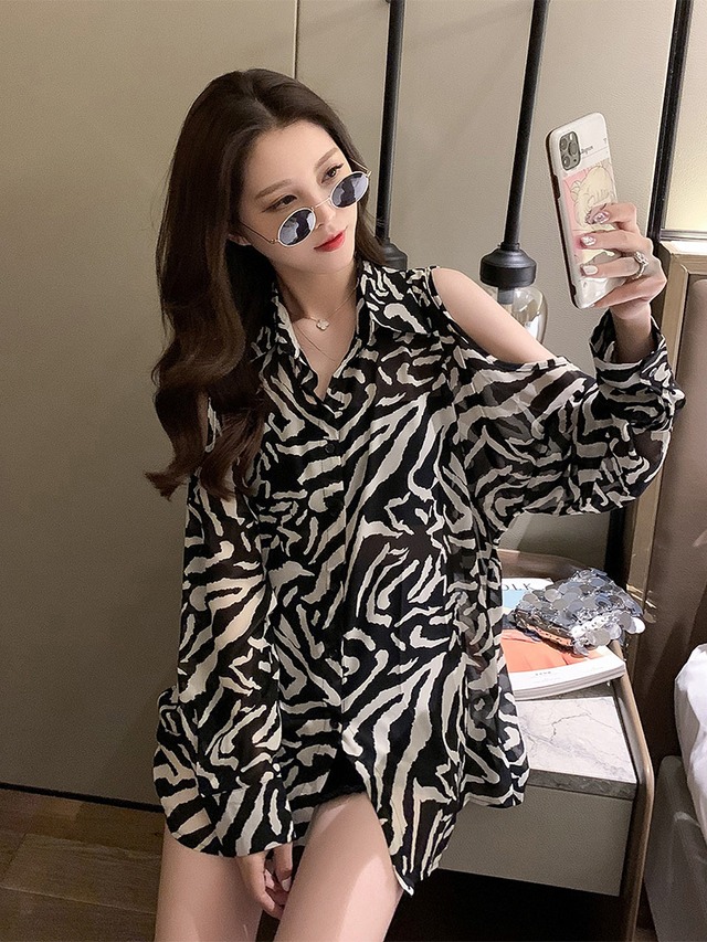 トップス シャツ 襟付きトップス 袖あり 長袖 Vネック 襟あり ストレート ワイド かわいい カジュアル おしゃれ かっこいい お洒落 レトロ 大人可愛い ラブリー キュート セクシー 主役級 無地 ゼブラ 春 夏 秋 冬 誕生日 10代 20代 レディース 女性用 学生 通学 デート 公園 パーティー イベント 着回し 普段使い 重ね着 お揃い 双子 韓国 コーデ ギフト S M L XL ゼブラ ホワイト ブラック