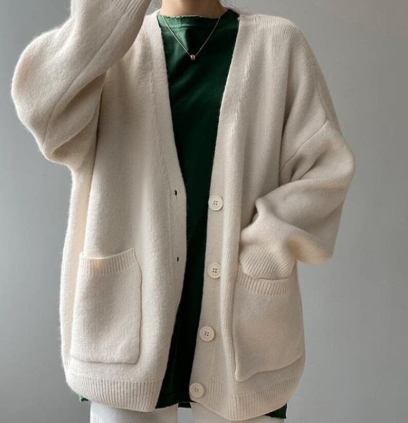 トップス カーディガンニット 上着 部屋着 袖あり 長袖 ボリューム袖 Vネック ワイド 前開き かわいい カジュアル お洒落 レトロ ラブリー キュート ガーリー ルーズ 個性的 主役級 存在感 無地 春 秋 冬 誕生日 10代 20代 30代 メンズ ペア 男女兼用 学生 女子会 お泊まり 休日 普段使い 重ね着 お揃い 双子 韓国 韓国系 楽ちん 暖かい 体系カバー プレゼント ギフト インスタ映え サイズ S M L XL 2XL ホワイト パープル イエロー レッド ブルー