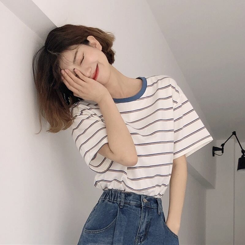 トップス デート Tシャツ カットソー 袖あり 半袖 かわいい 大人可愛い きれいめ シンプル カジュアル 大人 上品 おしゃれ お洒落 主役級 存在感 夏 10代 20代 レディース 女性用 OL 学生 デート お出かけ 公園デビュー 女子会 お泊まり 休日 旅行 着回し 普段使い ファッション コーデ 楽ちん トレンド 流行 インスタ映え S M L ゆったり ゆる 青 ブルー