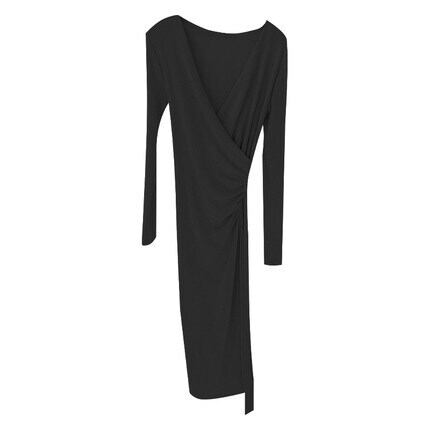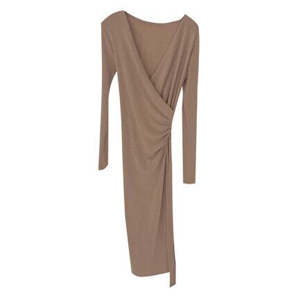 ワンピース 膝下スカート 膝下スカート 袖あり 長袖 Vネック 襟なし スリム タイト 細身 ストレート スマート 大人 シンプル 大人 おしゃれ お洒落 かっこいい 大人可愛い クール 無地 春 秋 冬 20代 30代レディース 女性用 女の子 デート お出かけ 女子会 お泊まり 休日 パーティー イベント リゾート お揃い 韓国 韓国系 ファッション S M LXL 2XL ベージュ ブラック ブルー ブラウン